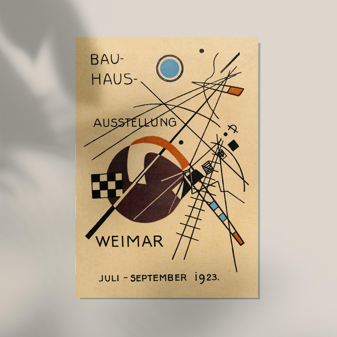 Das Bauhaus Ausstellung 1923 Weimar Poster von Wassily Kandinsky ist eine originalgetreue Reproduktion des Plakats zur ersten öffentlichen Bauhaus-Ausstellung in Weimar. Gedruckt im Berliner Atelier auf hochwertigem Fine‑Art‑Papier oder Baumwollleinwand.
