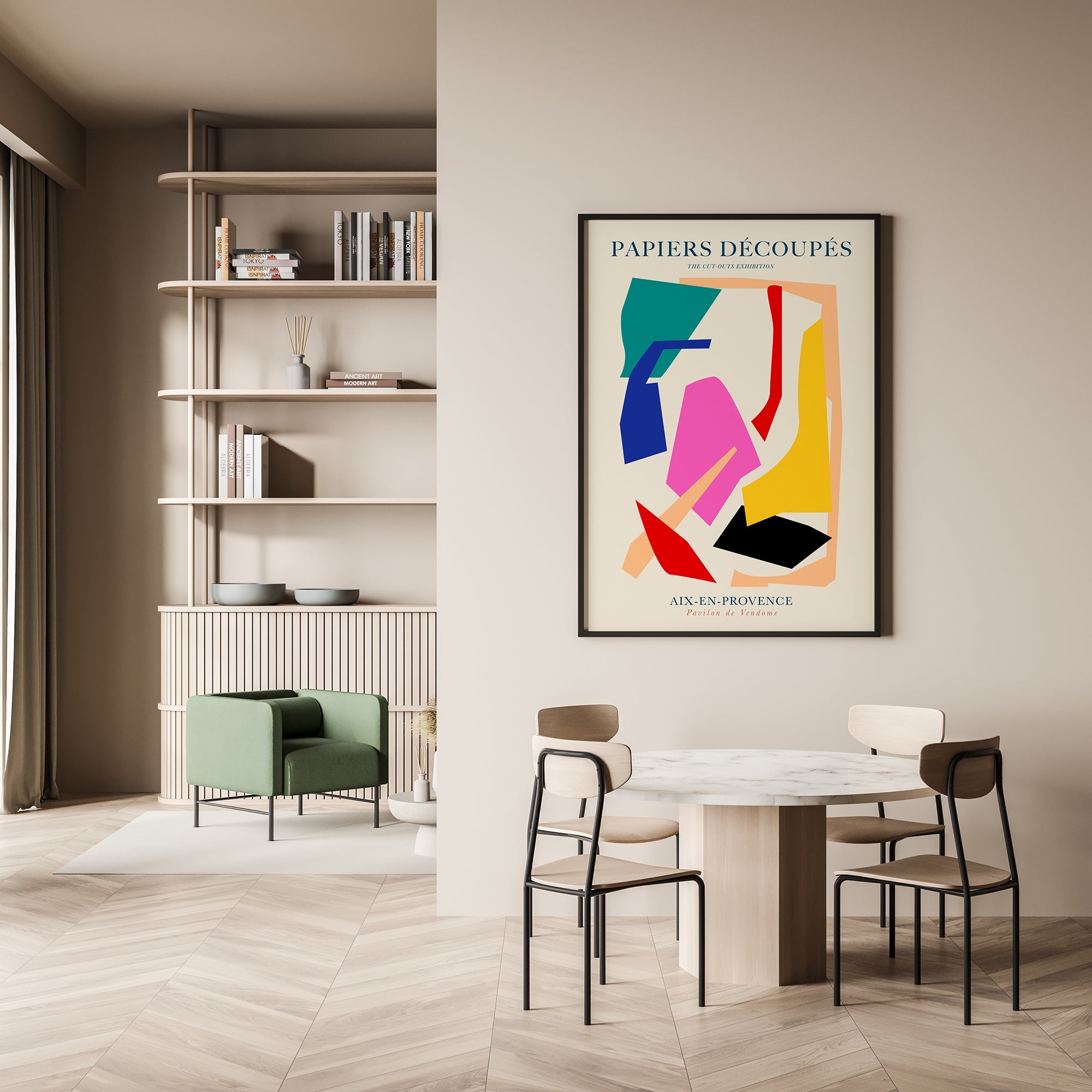 Das Vivid Abstract Cut-outs – Papiers Découpés Art Poster bringt die spielerische Leichtigkeit der modernen Kunst in deine vier Wände – inspiriert von farbigen Papierschnitten und organischen Kompositionen.