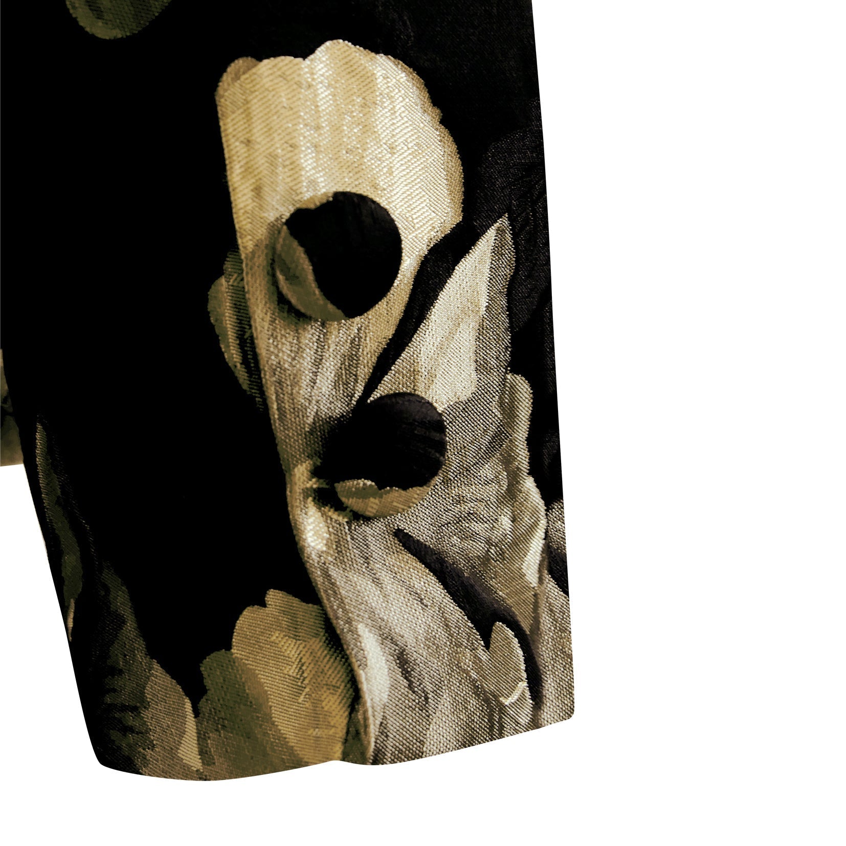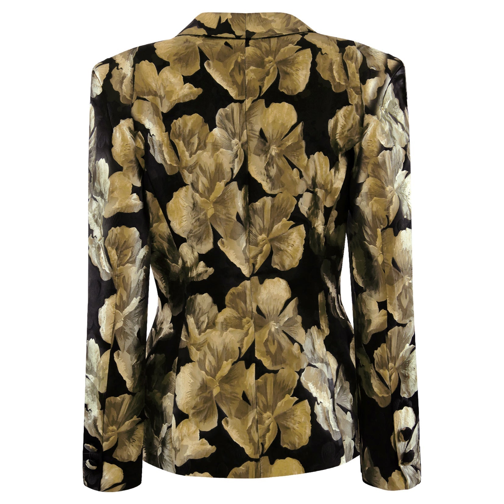 Der Blazer besteht aus hochwertigem Brokatmaterial, das für eine edle, leicht strukturierte Optik sorgt und dem Stoff Volumen und Formstabilität verleiht.