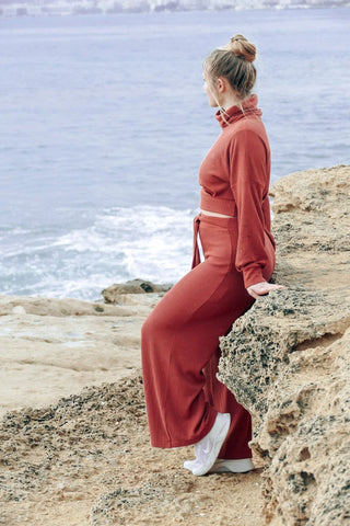 Aila Wide Leg Pants amber – High Waist | Wide Leg | Rippenjersey