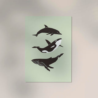 Whale & Dolphin Green Poster – Meeresmotive | Fine Art Print | Moderne Wandkunst