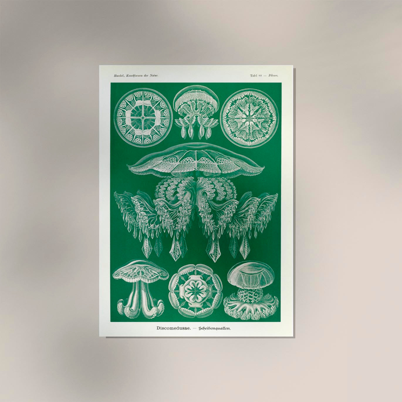Discomedusae Green Jellyfish – Ernst Haeckel Poster mit Rahmenbordüre | Fine Art Print | Wissenschaftliche Meereskunst