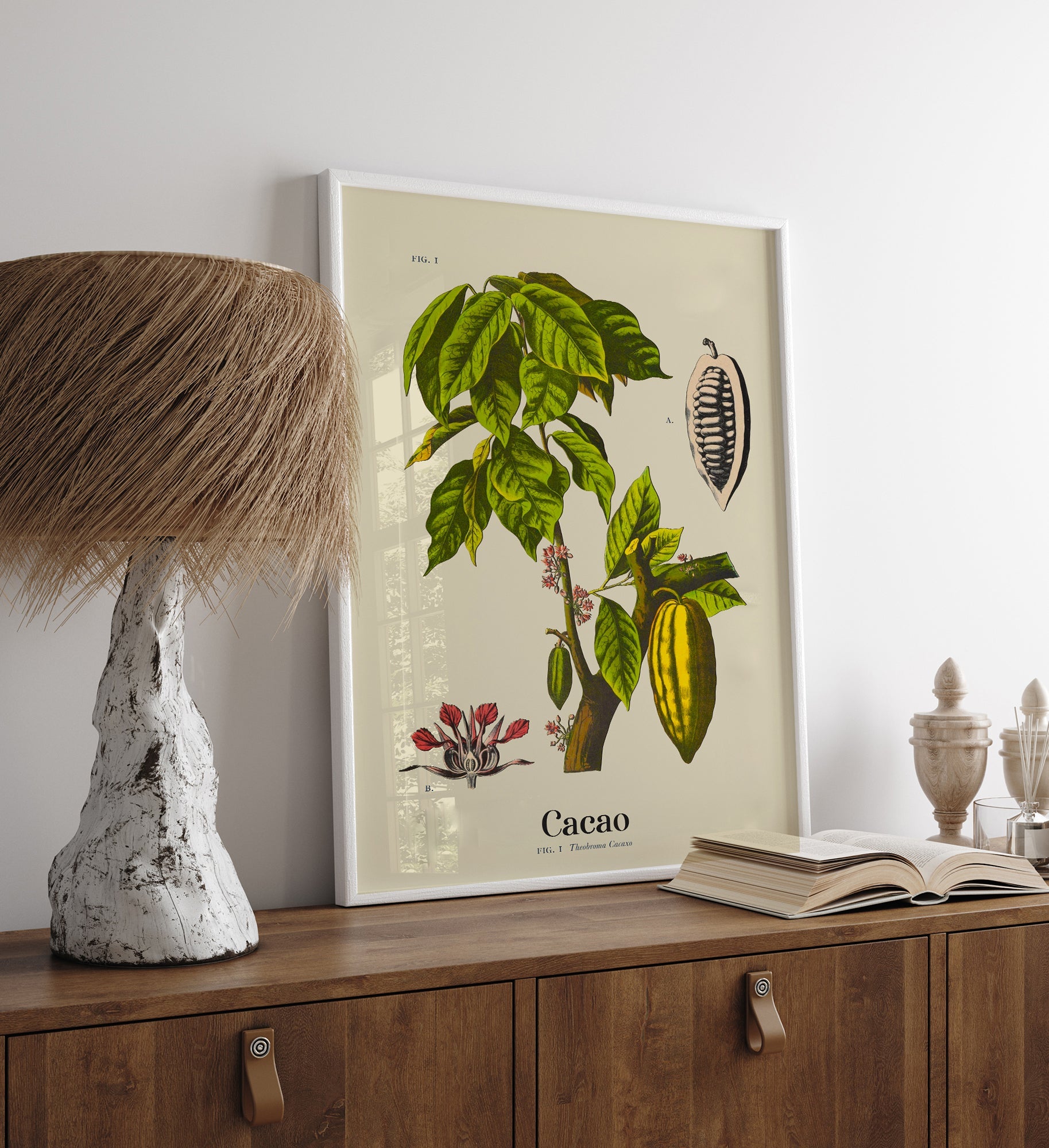 Ein fein abgestimmter Fine‑Art‑Print des Kakaobaums – lichtvoll, detailtreu und vielseitig kombinierbar in modernen wie klassischen Interieurs.
