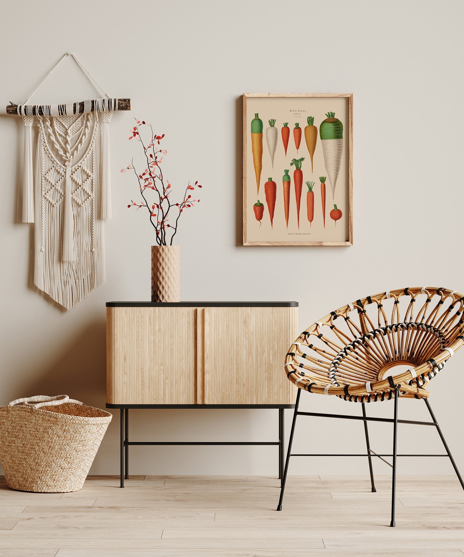 Ein fein abgestimmtes Fine‑Art‑Poster der Möhrenkunde – dekorativ, informativ und ideal für Küche, Bar und kuratierte Kulinarik‑Interieurs.