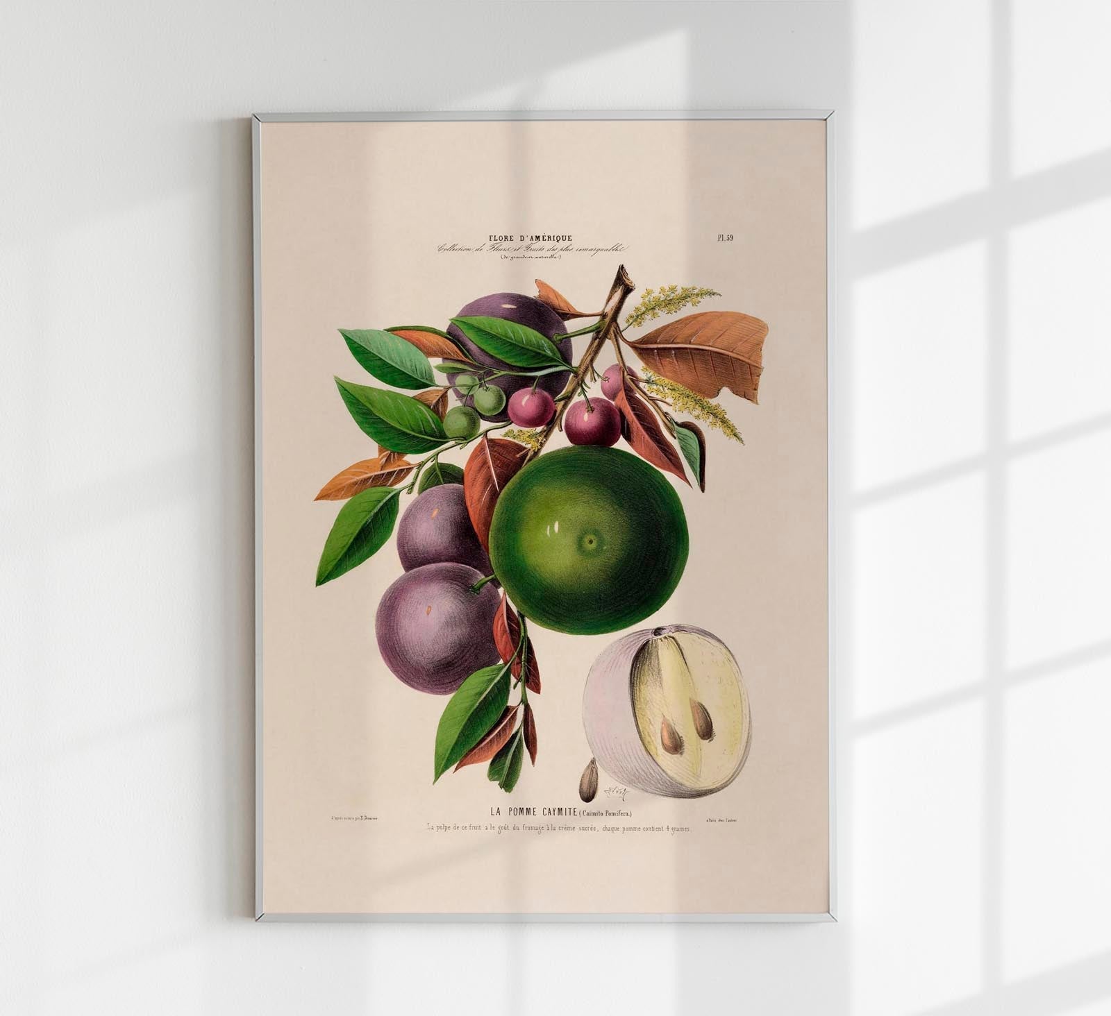 Das La Pomme Caymite Botanical Poster – Fine Art Print zeigt die seltenere Frucht „Caymite“ als dekorative Illustration und knüpft an die Ästhetik historischer botanischer Tafeln mit modernem Grafik-Touch an.