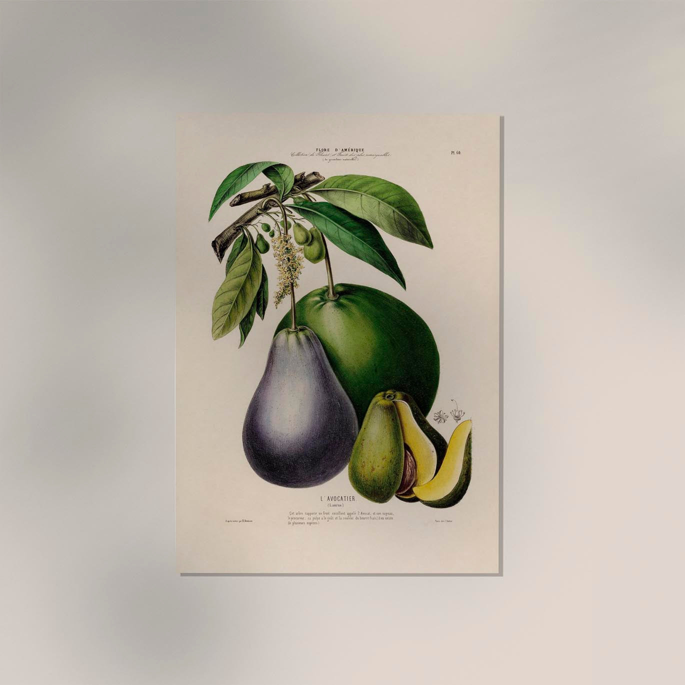 Dieses L'Avocatier Botanical Poster vereint klassische botanische Kunst mit hochwertigem Fine-Art-Druck und setzt ein stilvolles Statement für zeitlose Wanddekoration.
