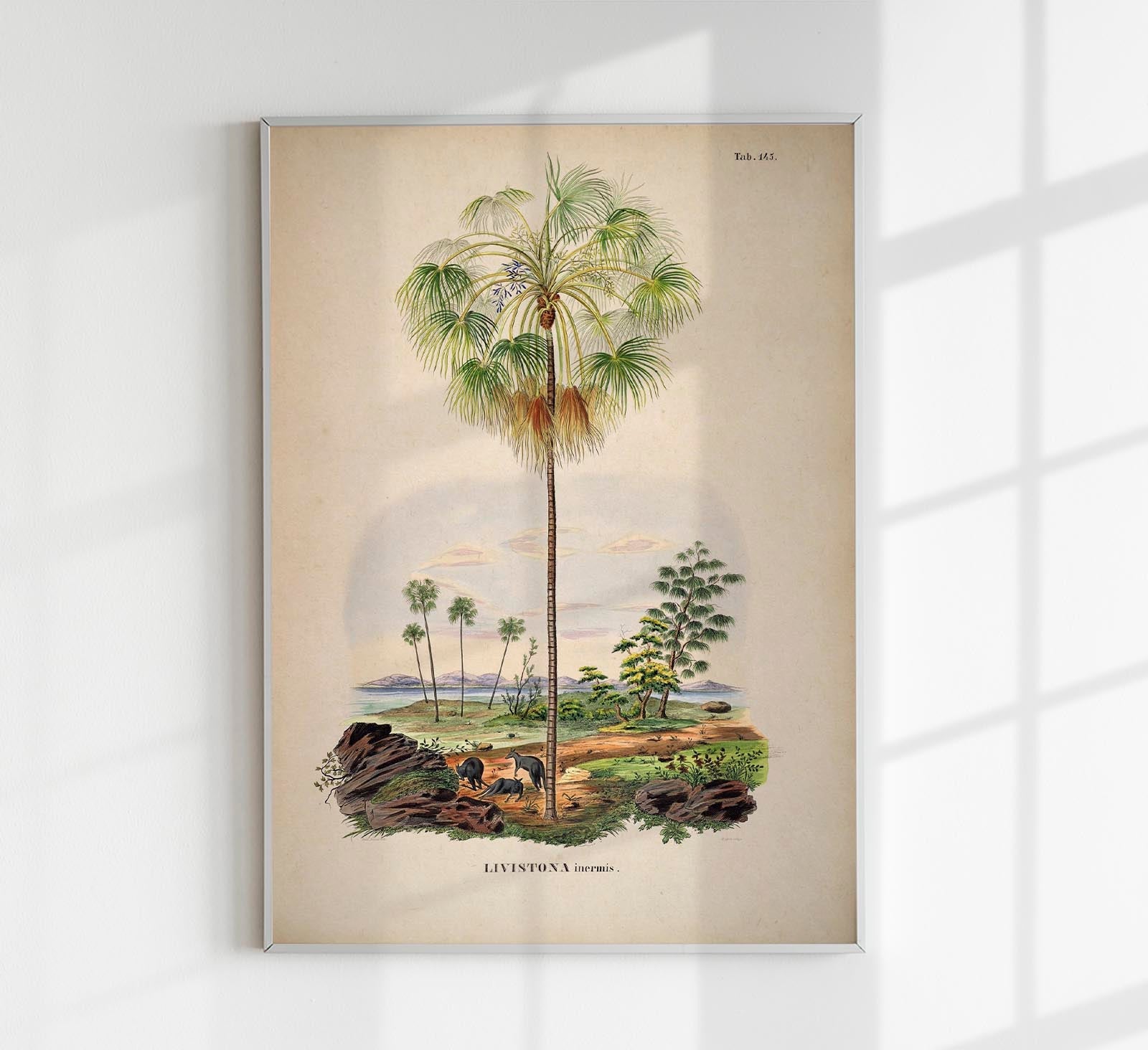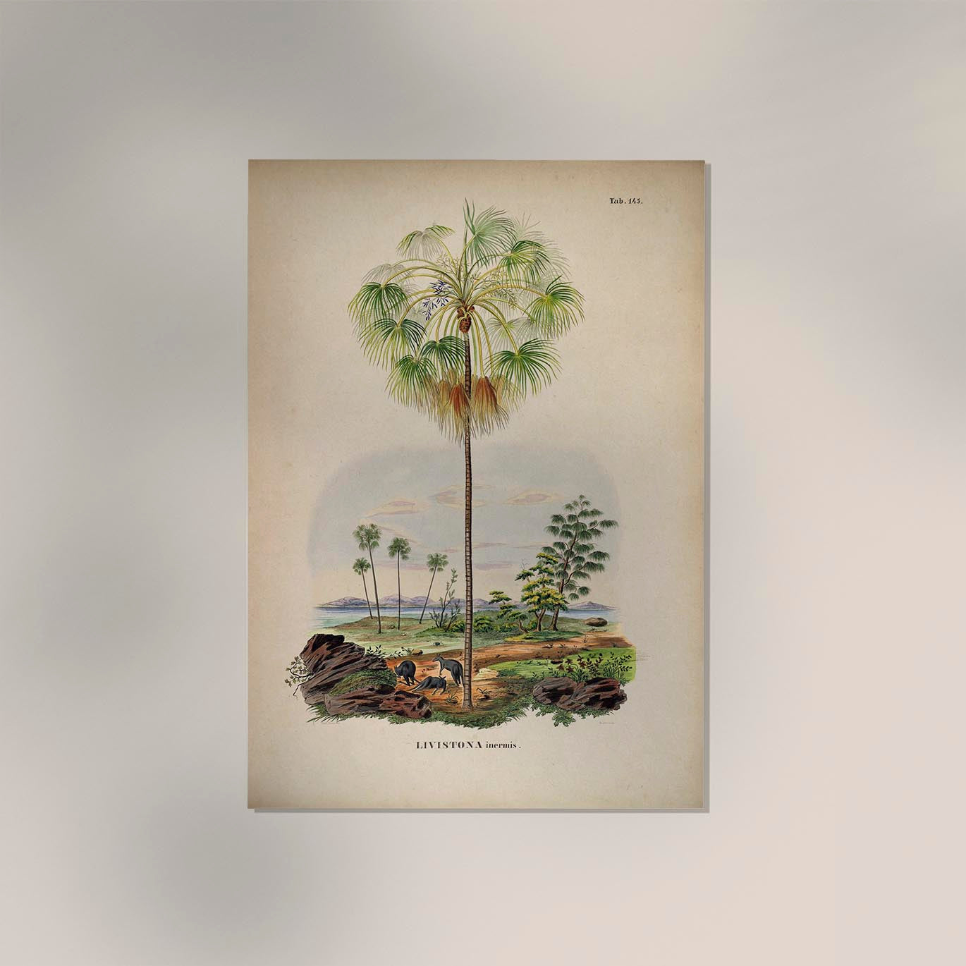 Livistona Inermis Tree Vintage Poster verbindet botanische Seltenheit mit vintage Charme und Premiumdruckqualität.