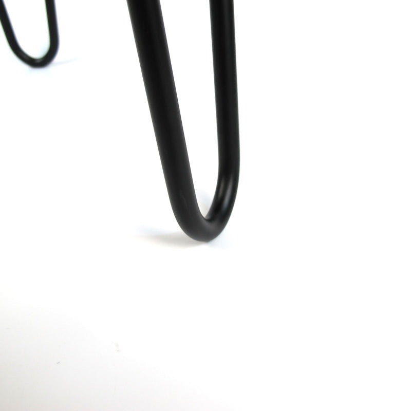 Die Kombination aus schwarz seidenmatten Stahlbeinen und der natürlichen Holzoptik sorgt für eine harmonische Verbindung von Rustikalität und Moderne.