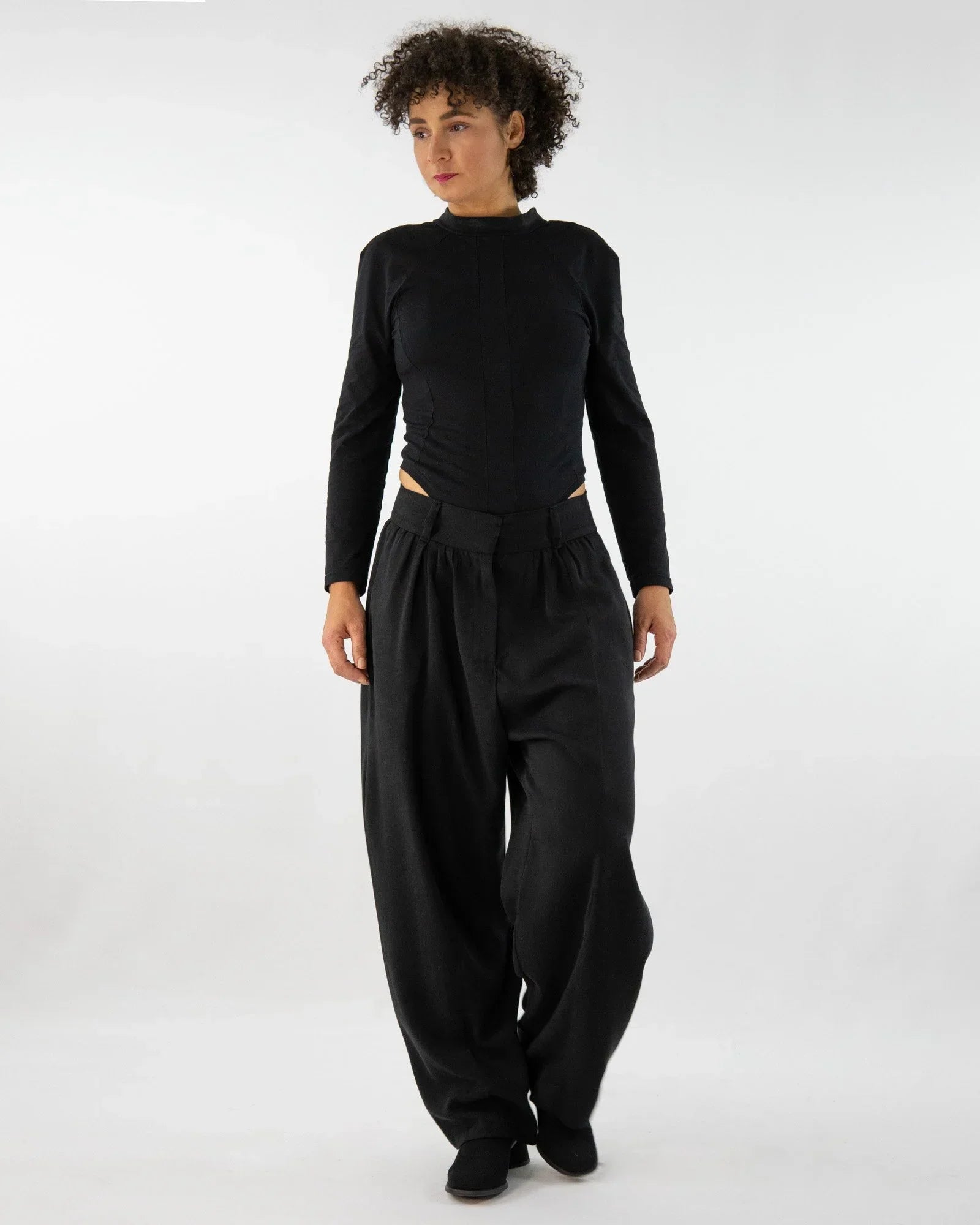 Mit tiefer Hüftpassform, weiten Beinen und geschwungenen Teilungsnähten ist sie die perfekte Wahl für moderne Looks mit Charakter – bequem, vielseitig und bewusst produziert.