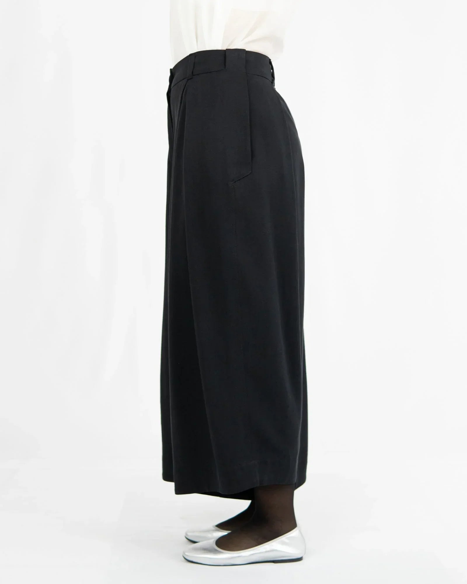 Die SMOOTH PANTS sind eine weit schwingende Culotte aus hochwertigem Tencel™-Twill, die minimalistisches Design mit höchstem Tragekomfort verbindet. Durch ihre Bundfalten fällt die Hose fließend und klar, während versetzte Tascheneingriffe nicht nur einen strukturellen Look schaffen, sondern auch eine aufrechte Haltung unterstützen.