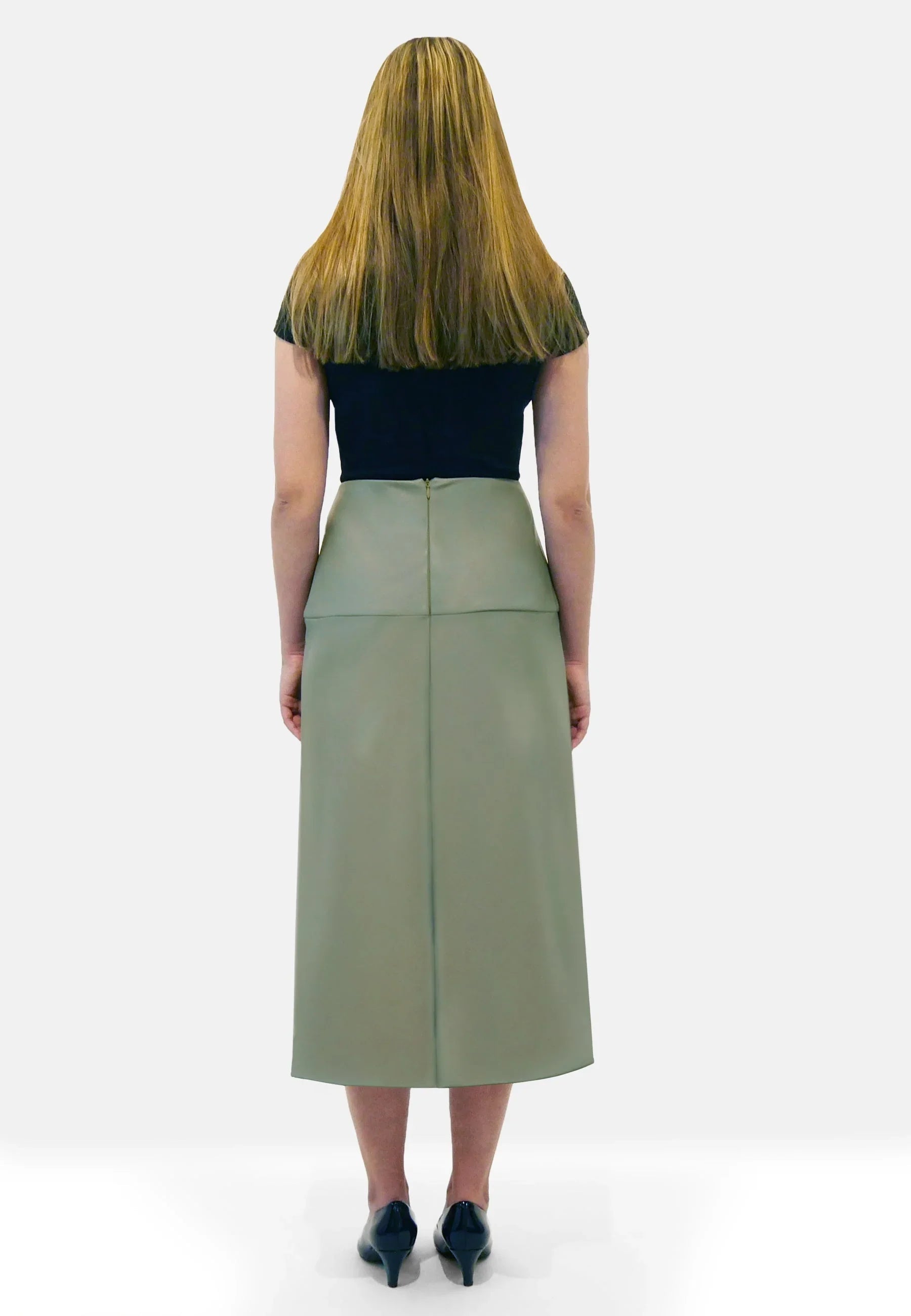 Der Rock aus Öko-Leder ist mehr als ein modisches Statement – er ist ein Zeichen für moderne, umweltfreundliche Materialien und stilvolles Design. Aus Ananasleder gefertigt, bietet er einen glatten, geschmeidigen Griff, der sich angenehm trägt und gleichzeitig bewusstes Konsumverhalten unterstützt.