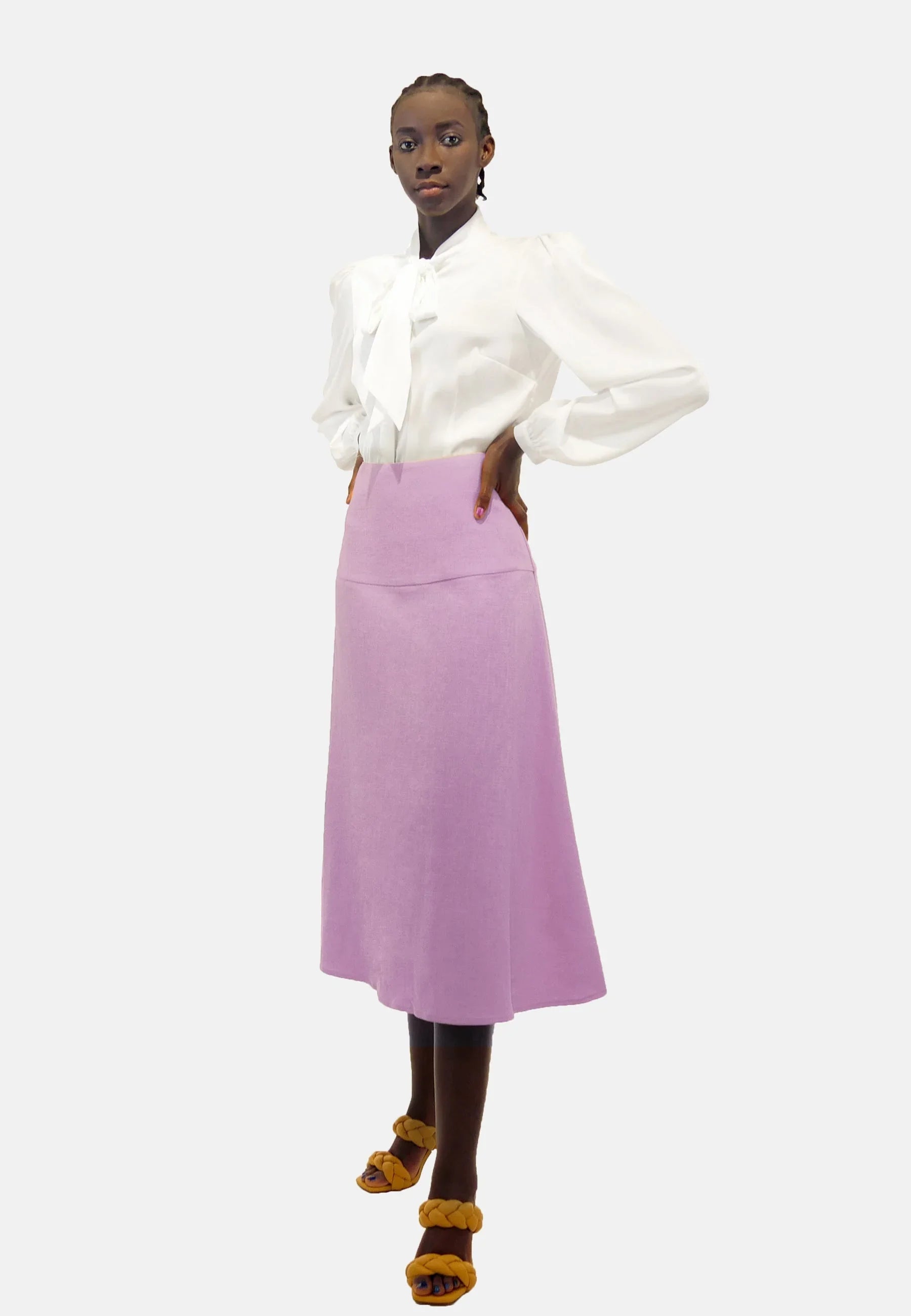 Der Rock Mel ist ein stilvoller Begleiter – ob im Büro, im Café oder beim Spaziergang in der Sonne. Die klassische Midi-Länge endet auf halber Wade und bewegt sich sanft um die Beine, während der hoch taillierte Bund deine Figur wunderbar zur Geltung bringt.
