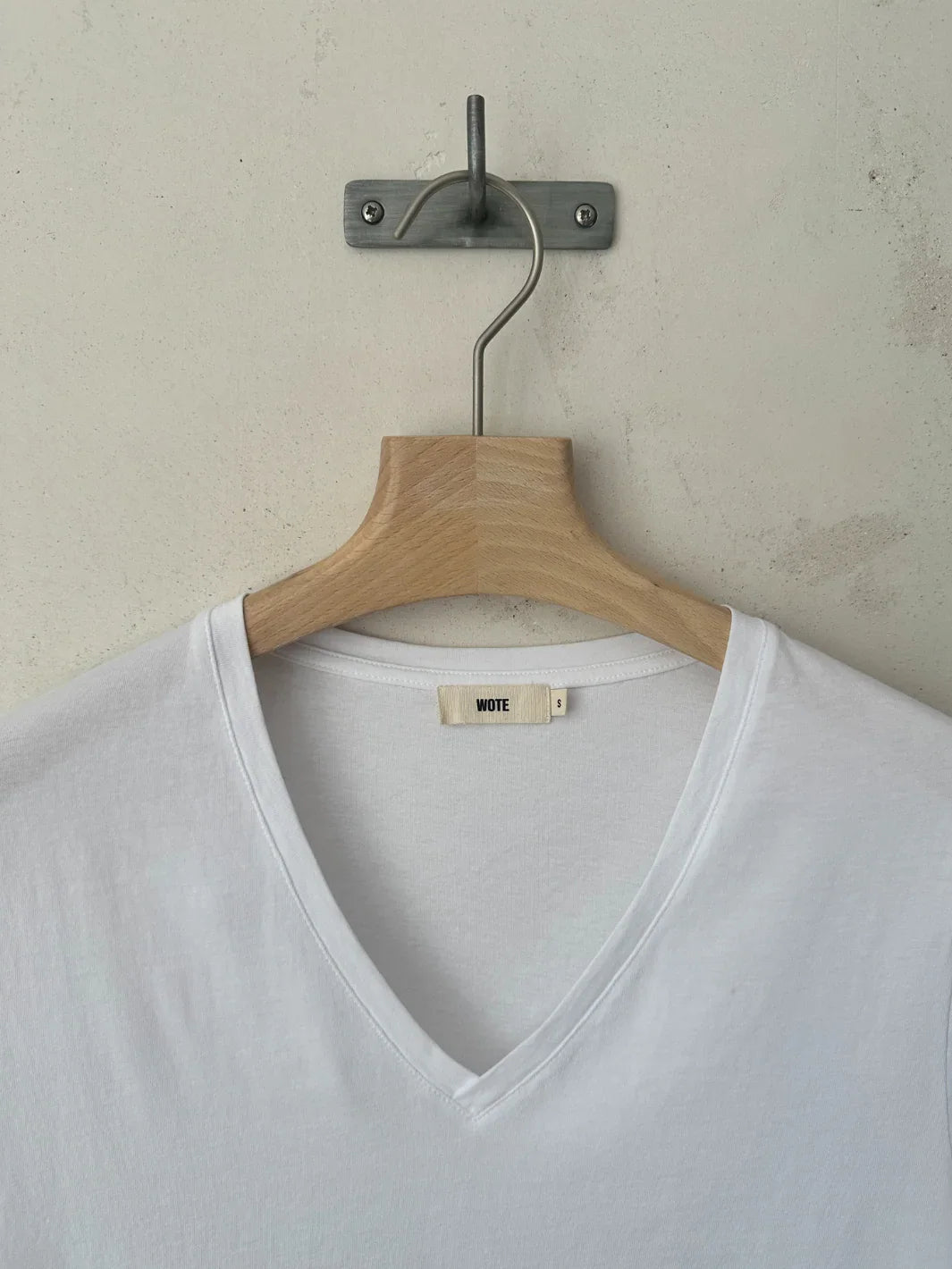 Sorgfältig hergestellt in Portugal – ein nachhaltiges V-Neck Shirt aus 100 % Bio-Baumwolle für deinen bewussten, modernen Stil.