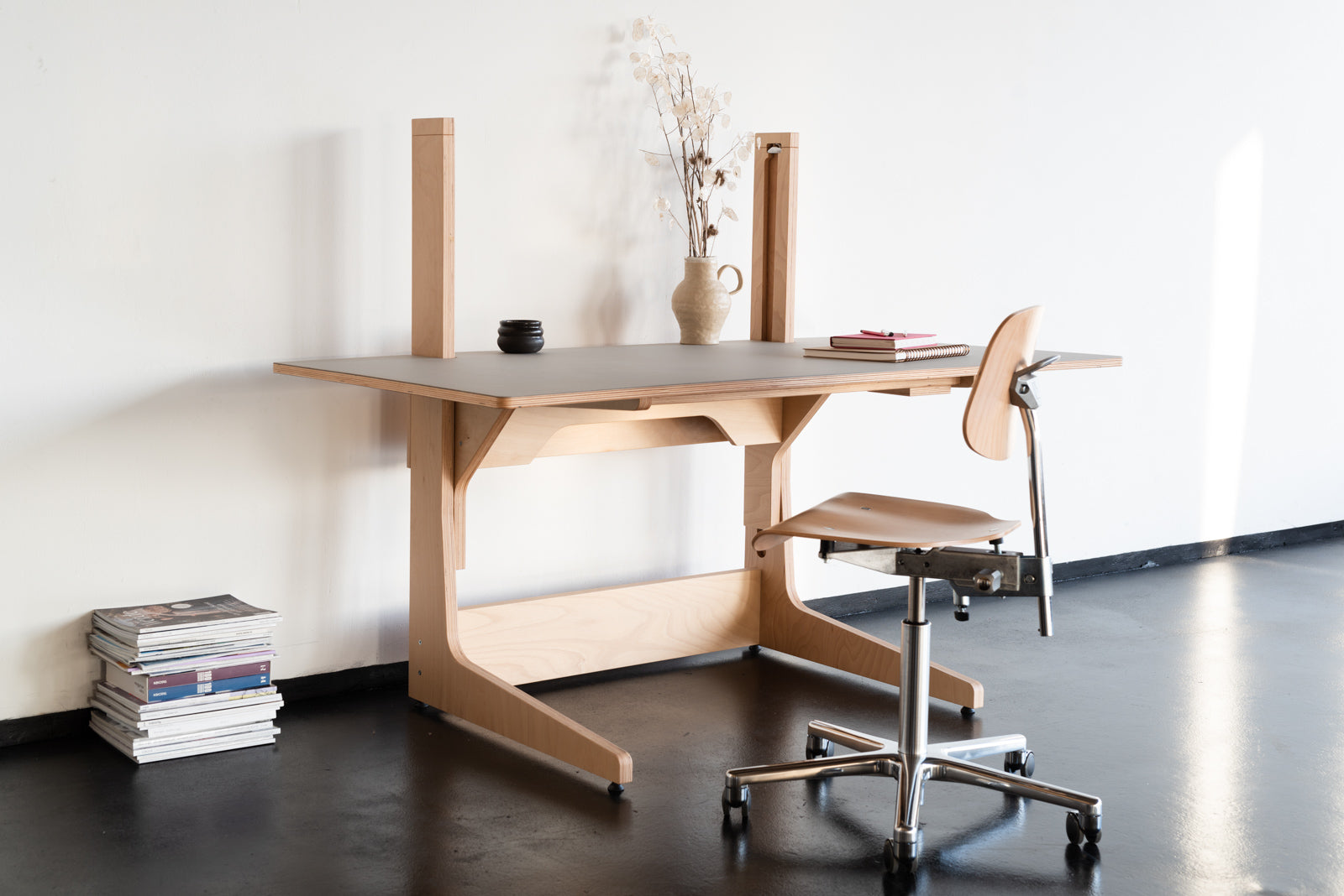 Der DEXTER ist ein höhenverstellbarer Schreibtisch, der kompromisslos auf Design, Funktion und Nachhaltigkeit setzt. Mit seiner mechanischen Höhenverstellung, einer sorgfältig verarbeiteten Multiplex-Tischplatte und einer Oberfläche aus natürlichem Linoleum ist er mehr als nur Arbeitsplatz – er ist Ausdruck eines bewussten Arbeitsstils.