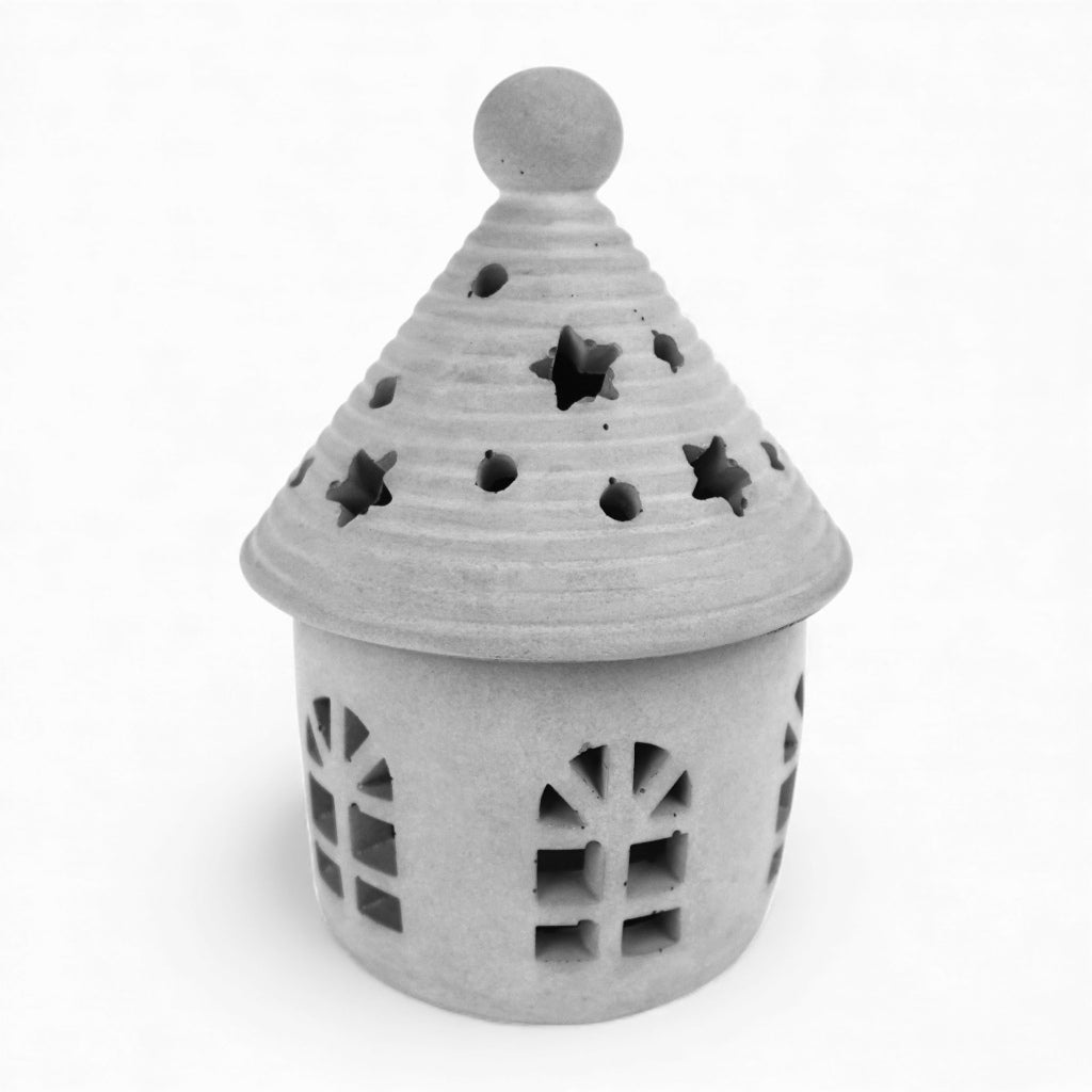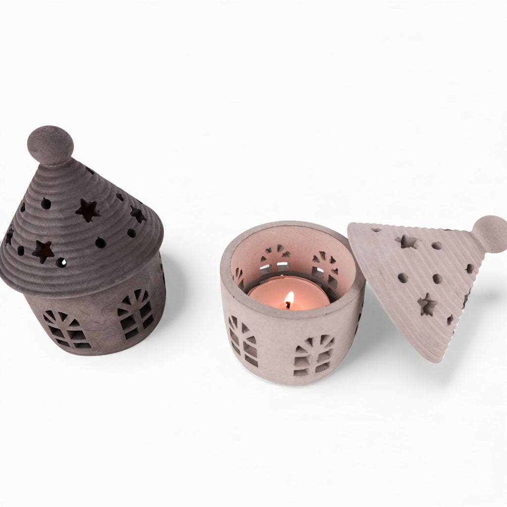 Ein feuerfestes Teelichthäuschen aus Beton – schlicht im Design, stimmungsvoll im Licht.
