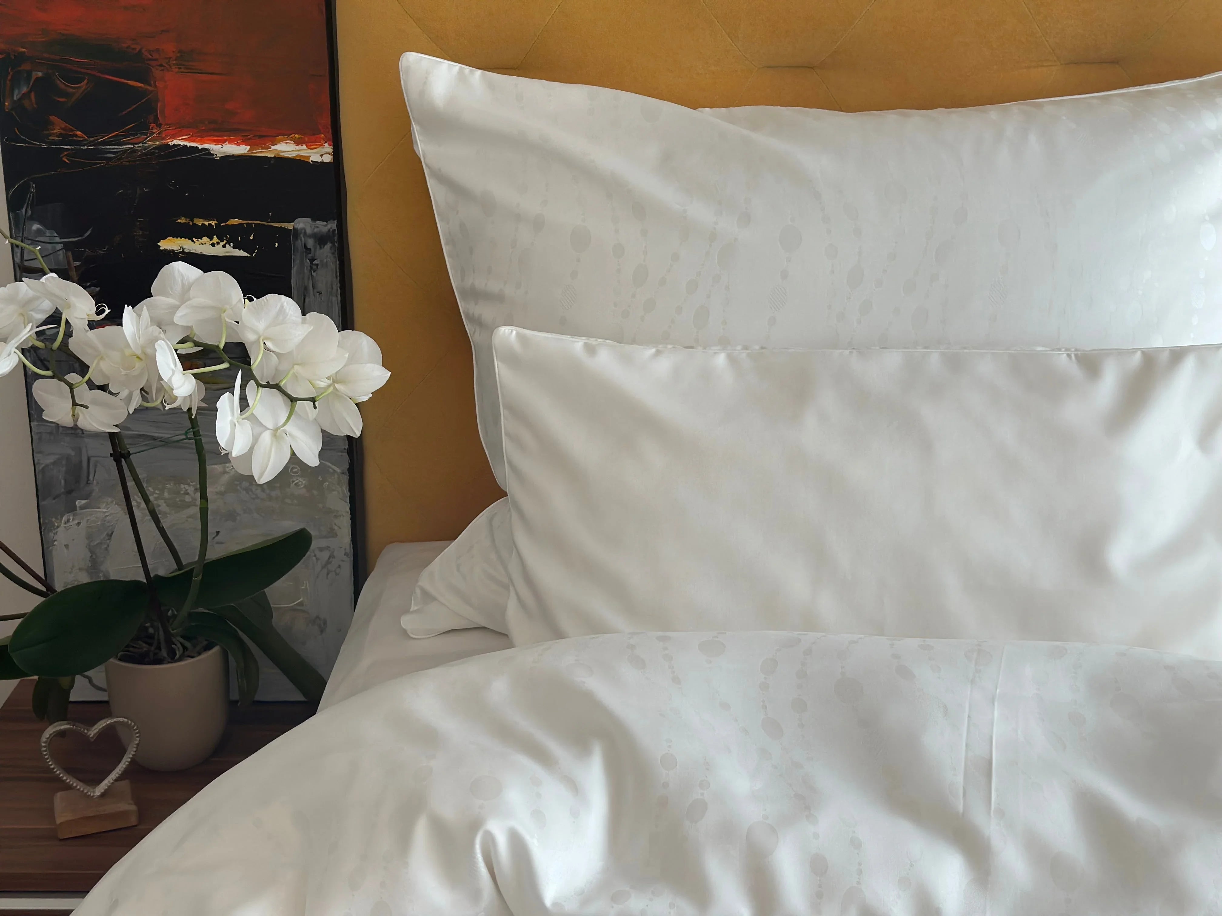 Damast go-green Bettwäsche Set Pearl White – Nachhaltig | Bügelleicht | Allergikerfreundlich
