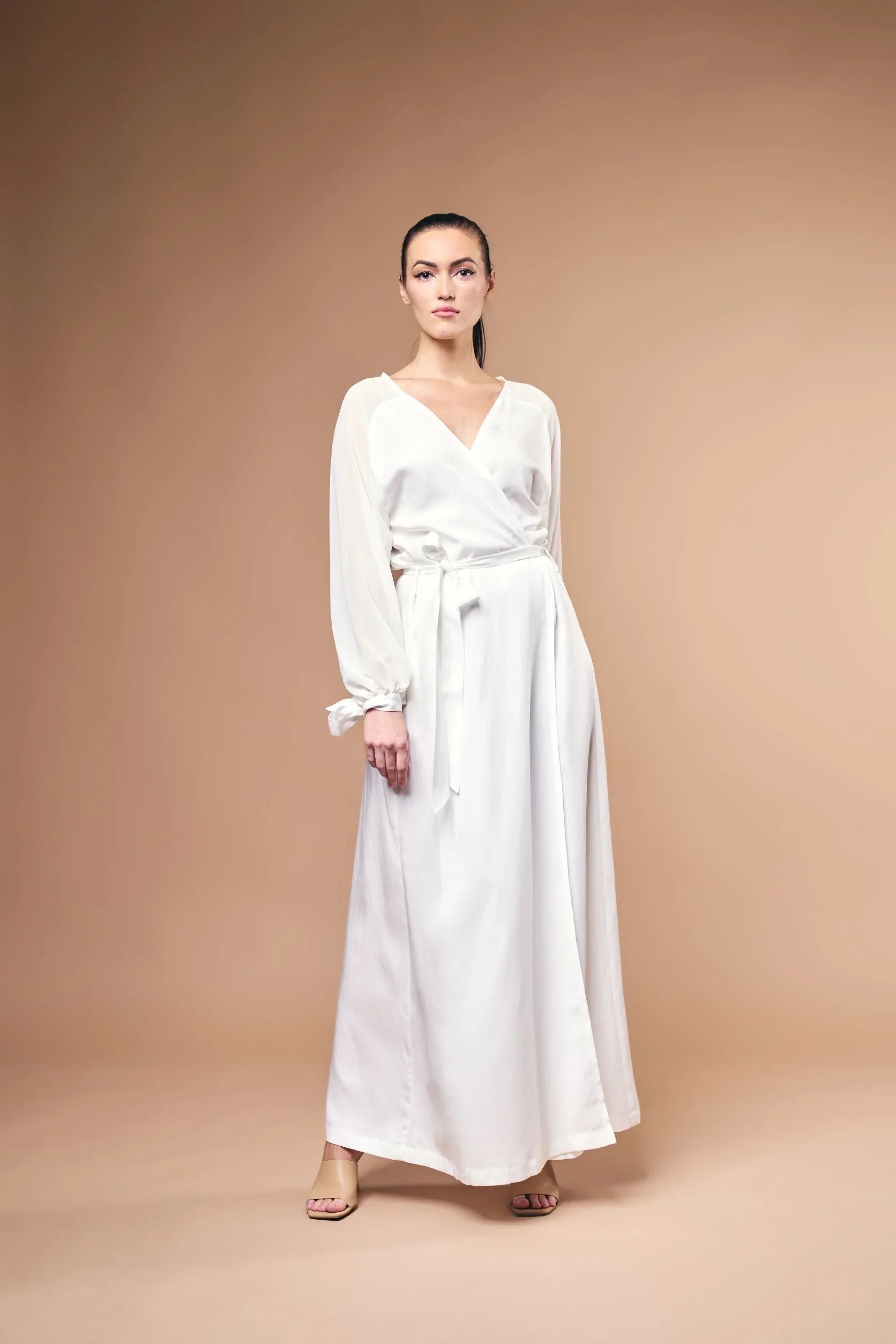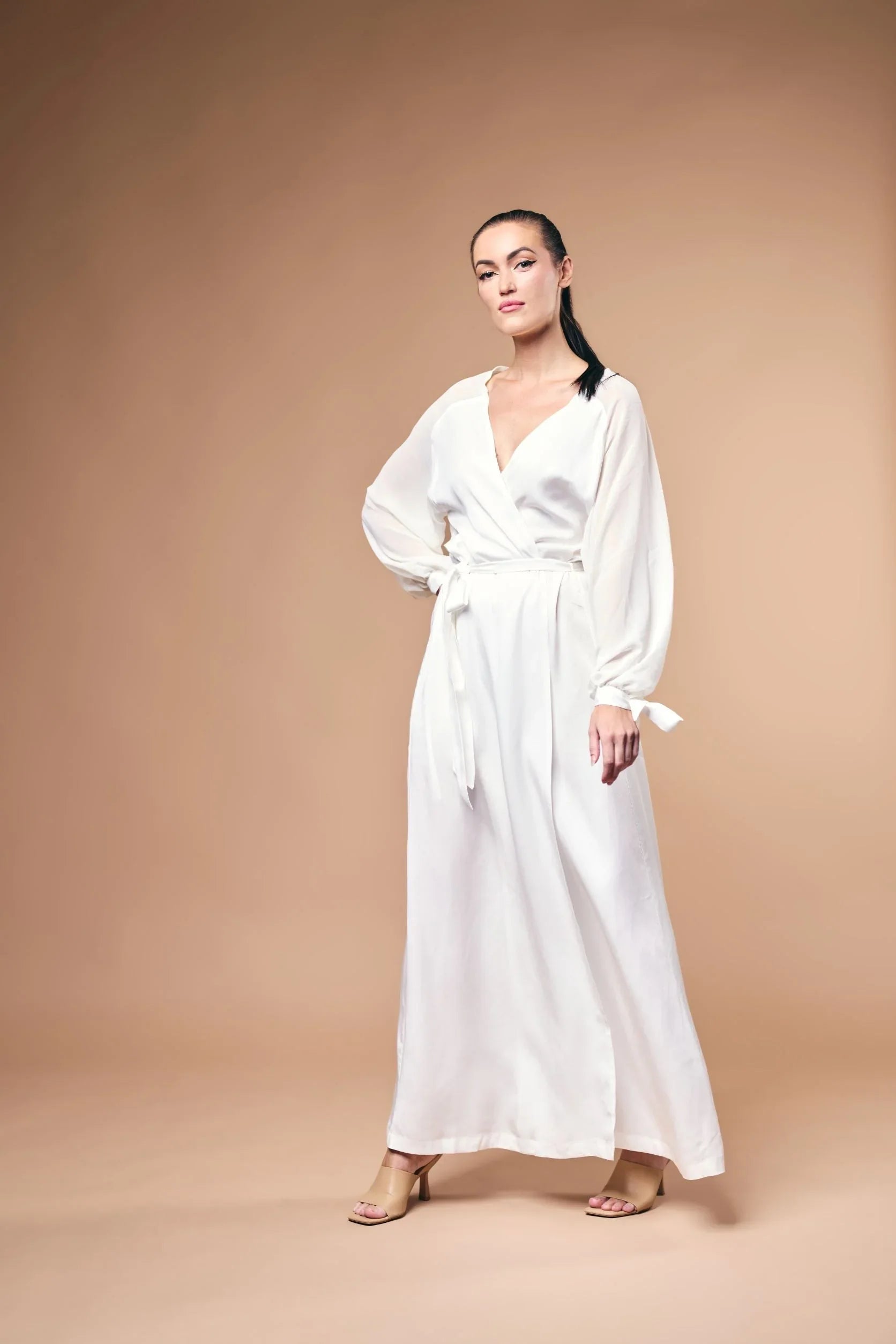 Der Kimono Johanna besticht durch seidigen Micro-Tencel-Satin aus 100% Zellulosefasern, gewonnen aus Eukalyptusbäumen, und bietet erstklassige Weichheit und Atmungsaktivität.
