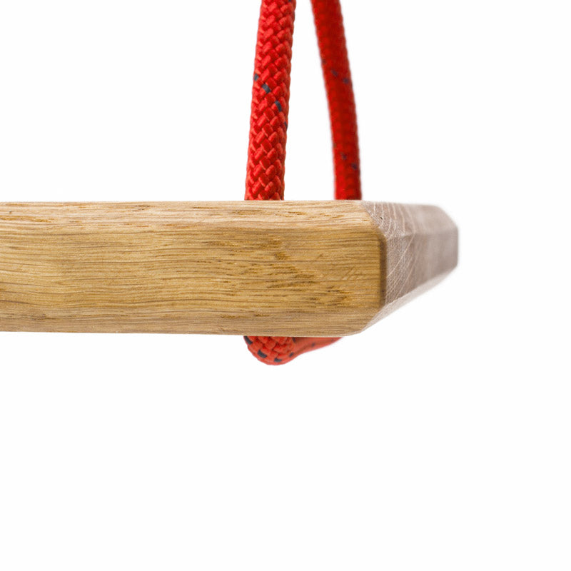 Jede Schaukel wird in liebevoller Handarbeit gefertigt – aus robuster Eiche und ausgestattet mit langlebigen, statischen Kletterseilen in klassischer Doppelachter-Führung.