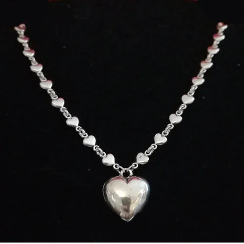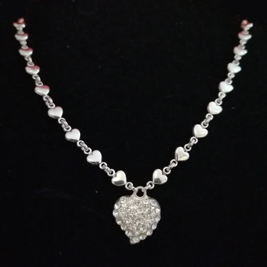 Der zarte Herzanhänger – wahlweise als Strassherz oder poliertes Metallherz – trifft auf eine feingliedrige Kette aus kleinen Herzgliedern. So entsteht ein liebevolles Schmuckstück, das pure Emotion ausstrahlt und deinen Look charmant abrundet.