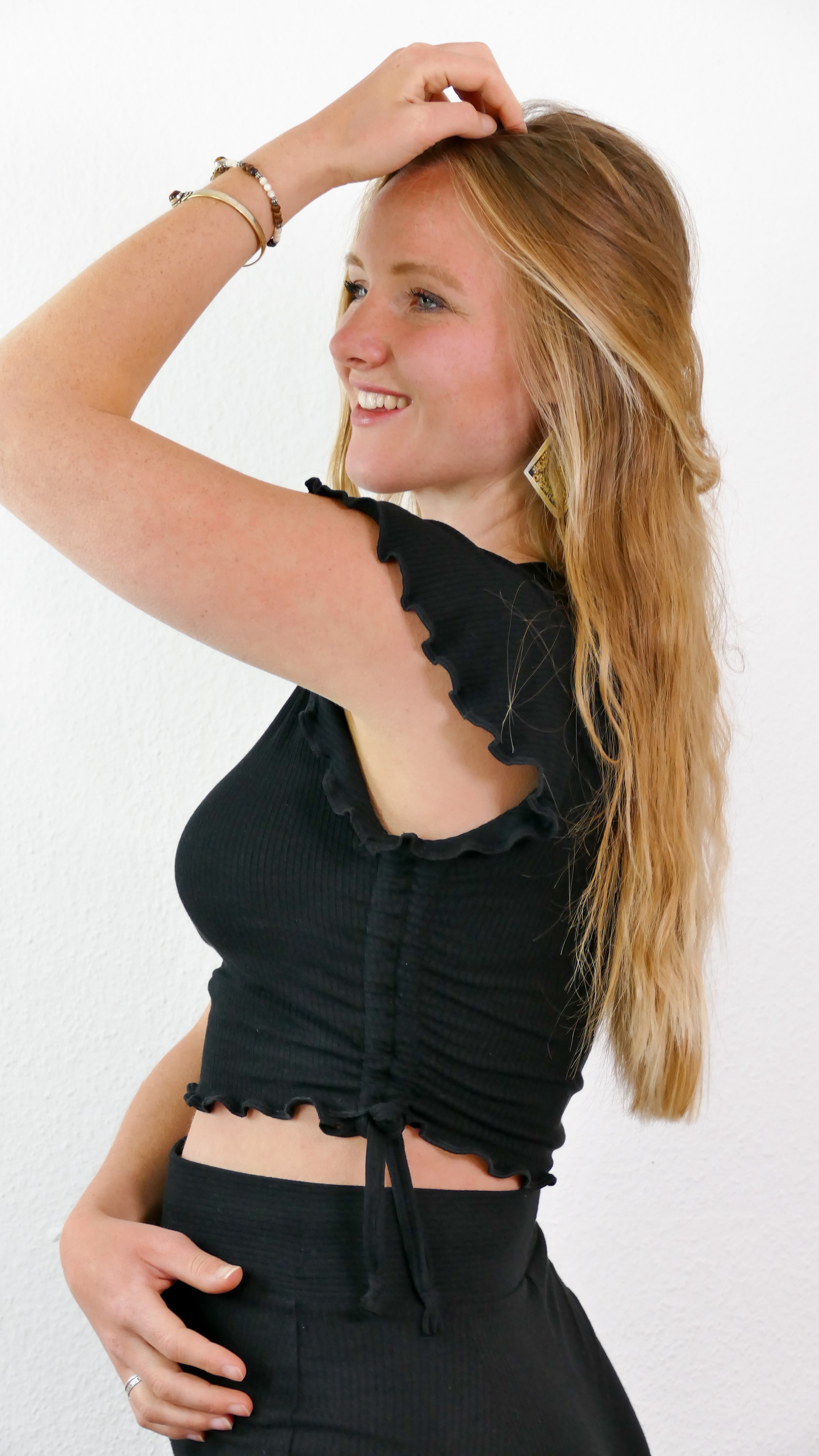 FARRAH Crop T-Shirt black – Rippoptik | Schnürung | TENCEL™-Softness