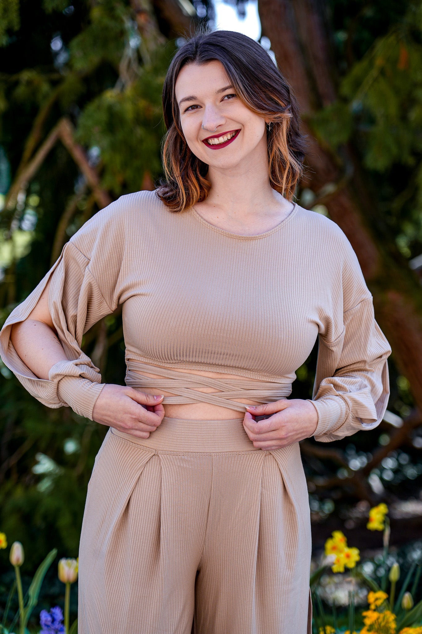 Farrah Flower Pulli – TENCEL™ Modal | Crop-Schnitt | Schnür-Detail