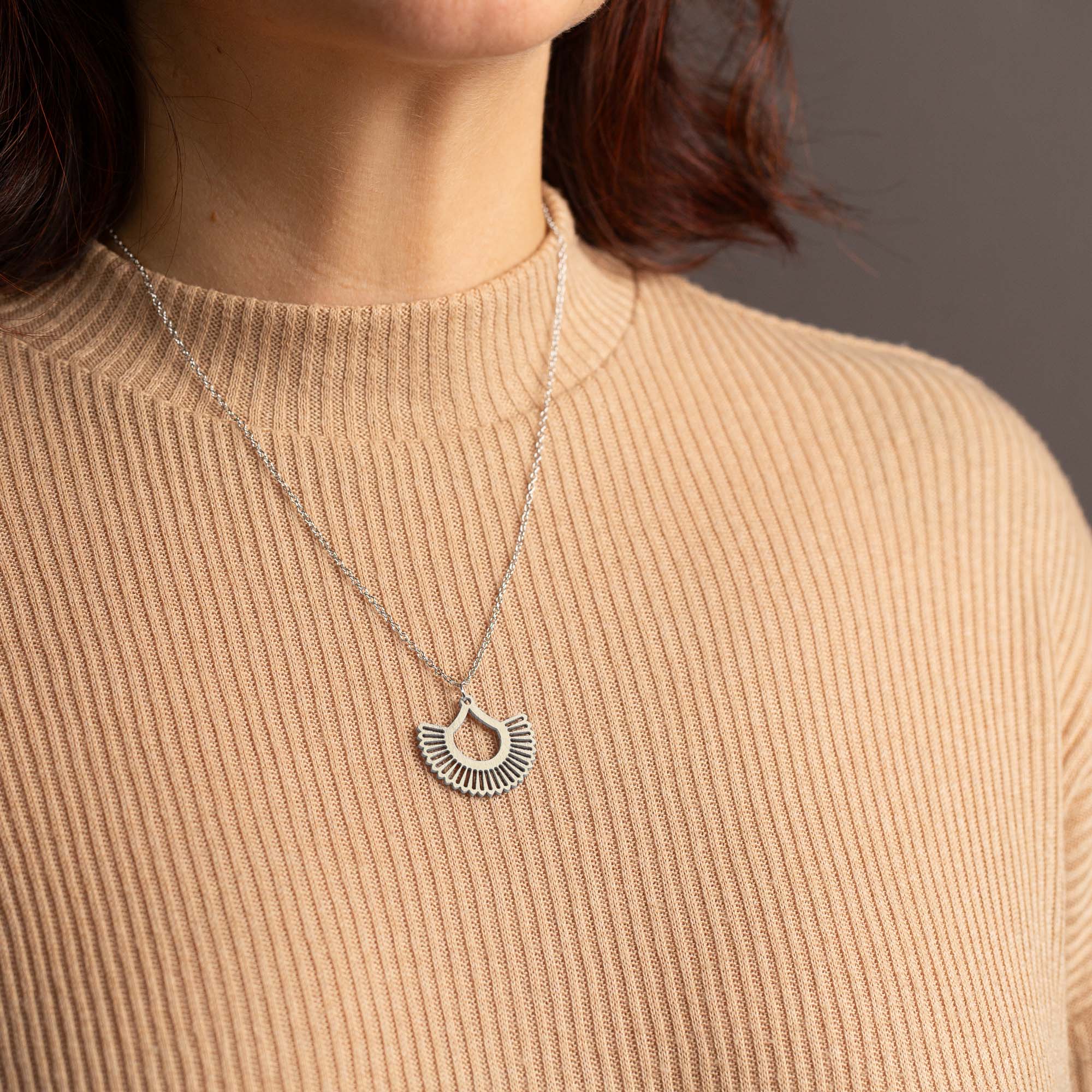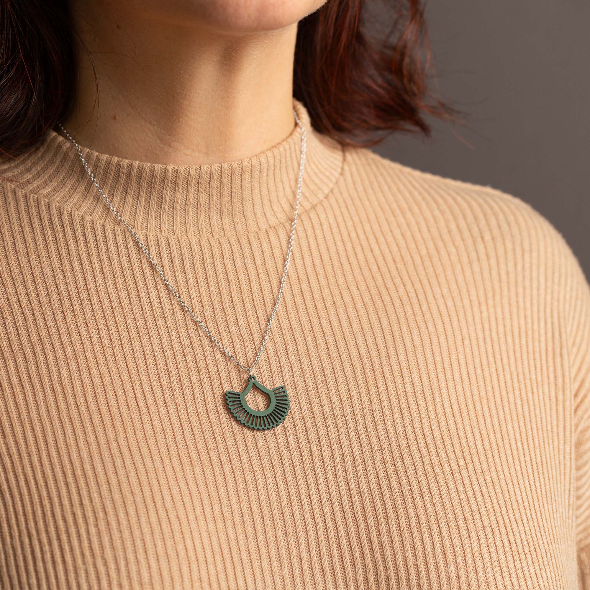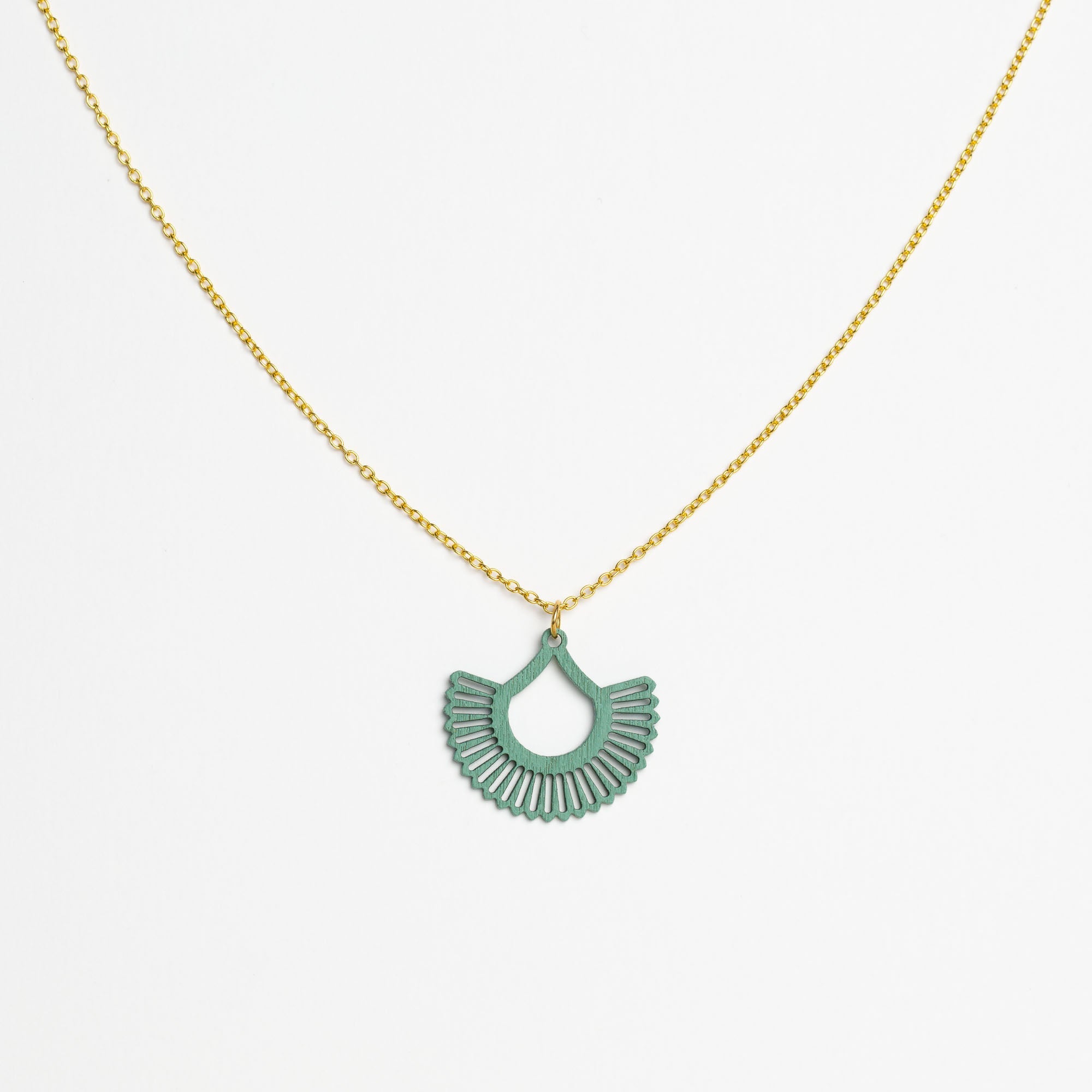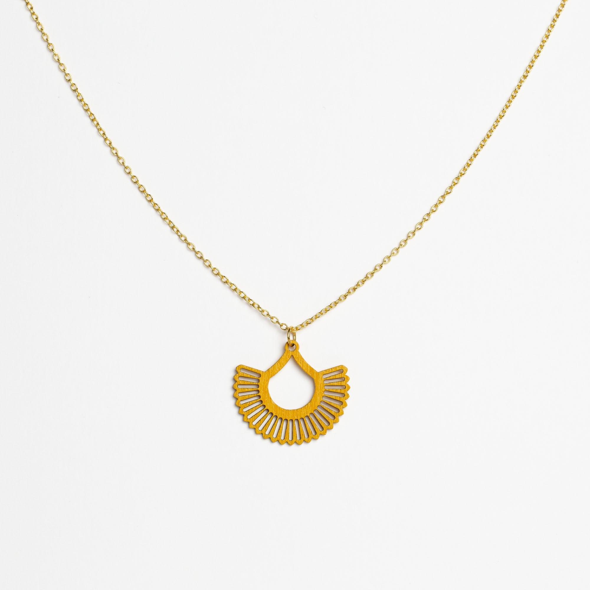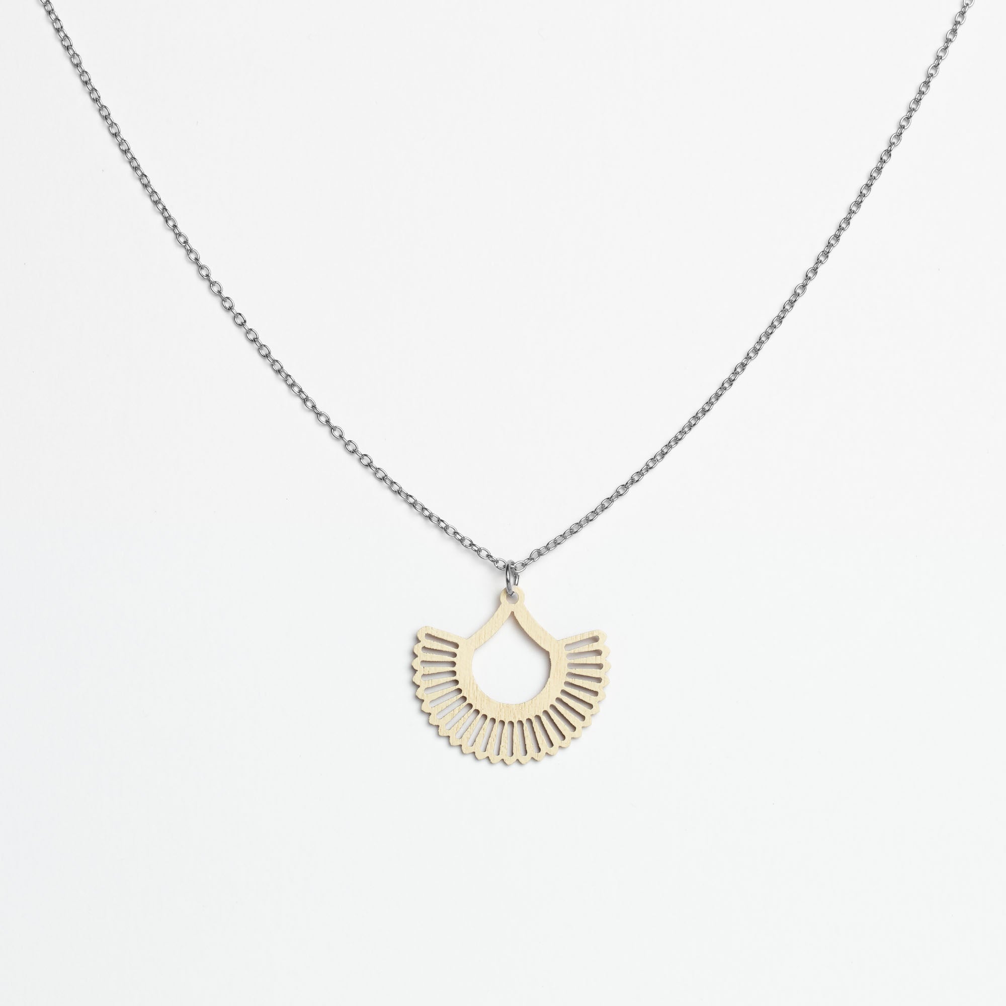 Maße Holzanhänger: 28 mm Breite × 25 mm Höhe × 1 mm Dicke. Kettenlänge: 45 cm – die vielseitige Länge, die in der Regel am Schlüsselbein liegt und sich gut layern lässt.