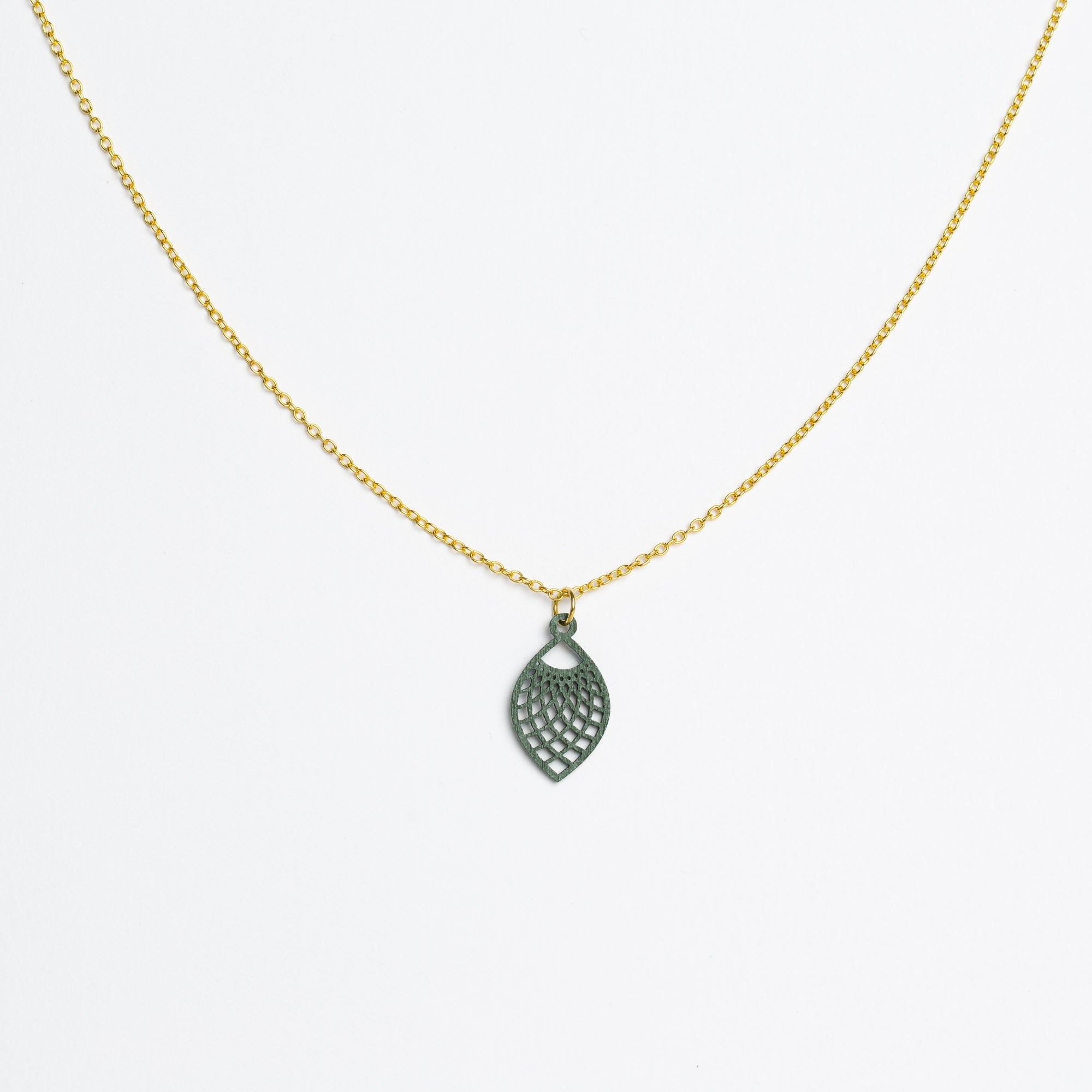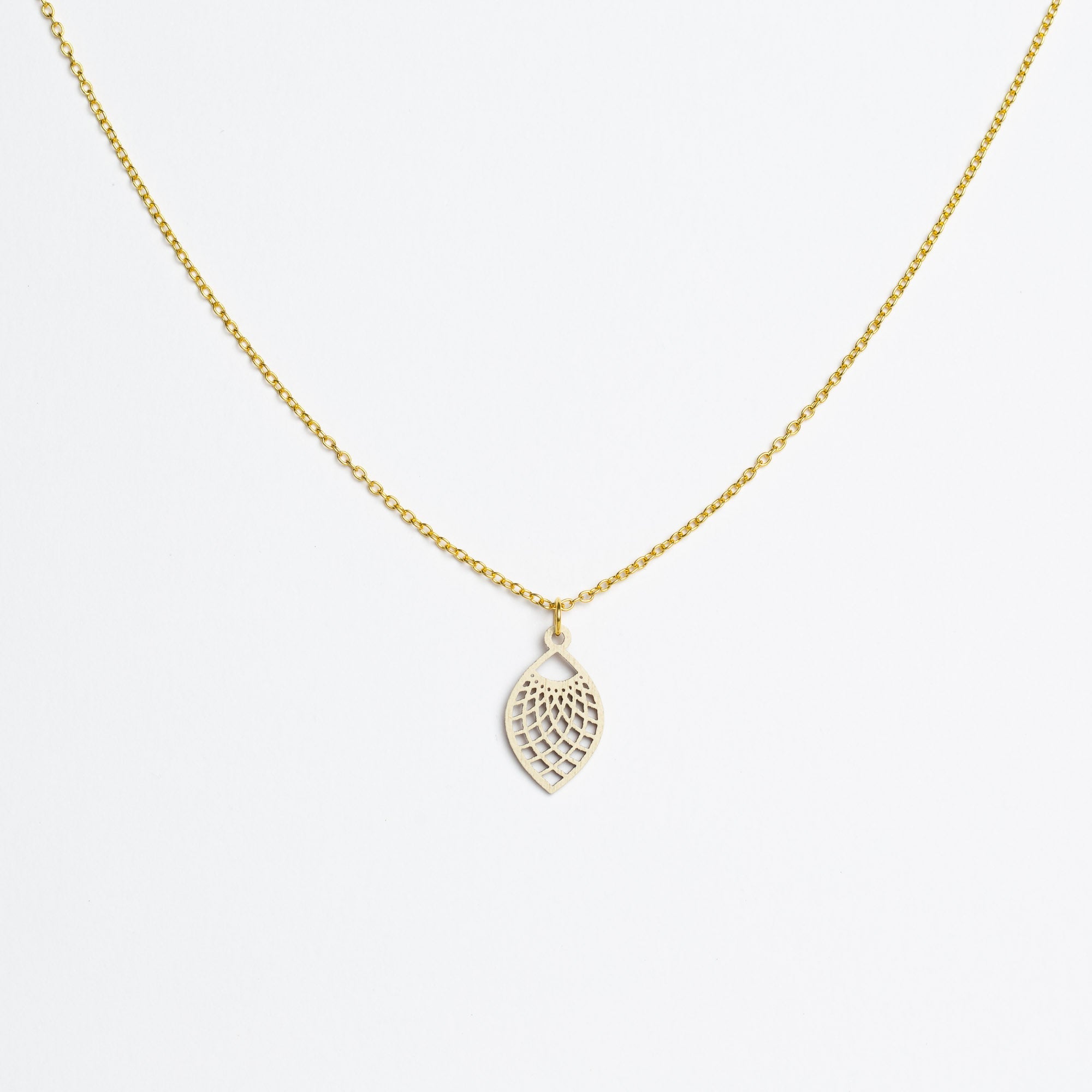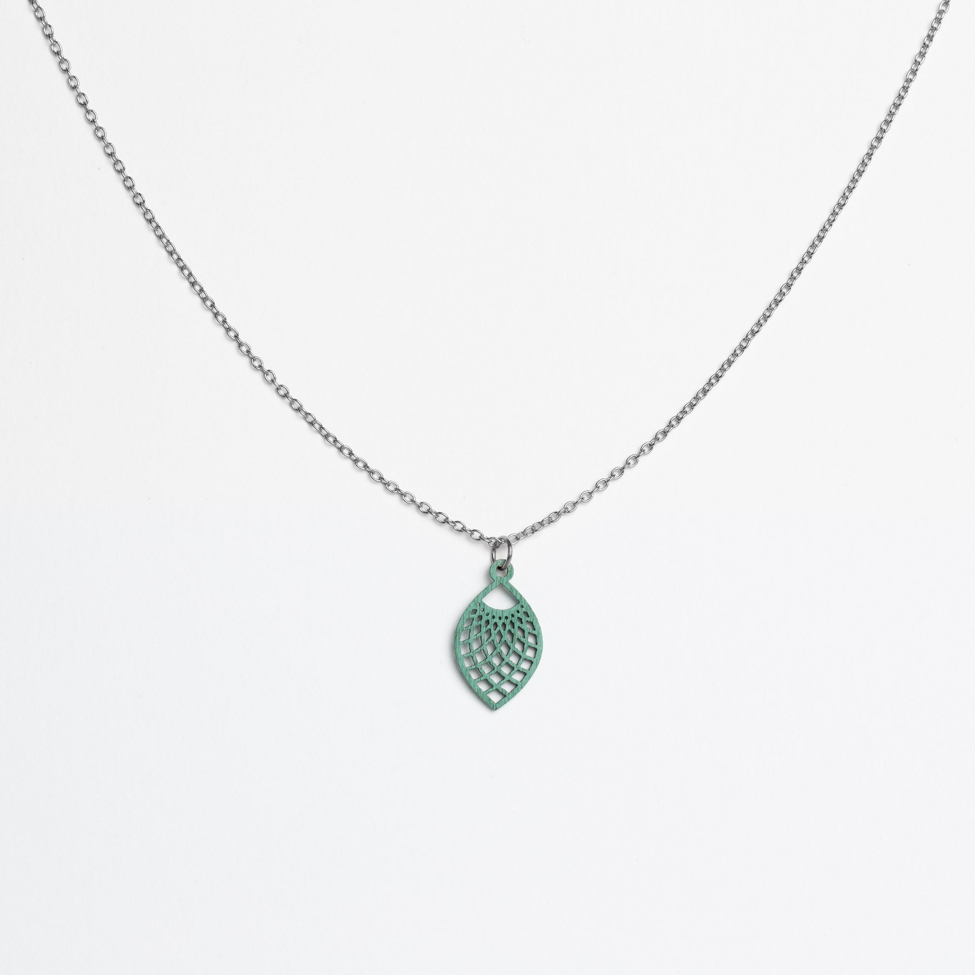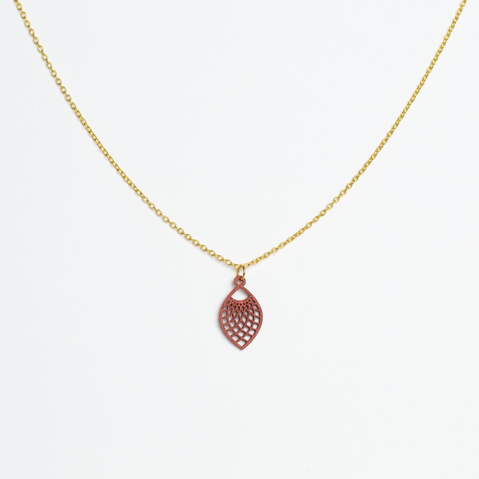 Maße Holzanhänger: 13 mm Breite × 22 mm Höhe × 1 mm Dicke. Kettenlänge: 45 cm – die beliebte Allround-Länge, die in der Regel am Schlüsselbein liegt und vielseitig kombinierbar ist.