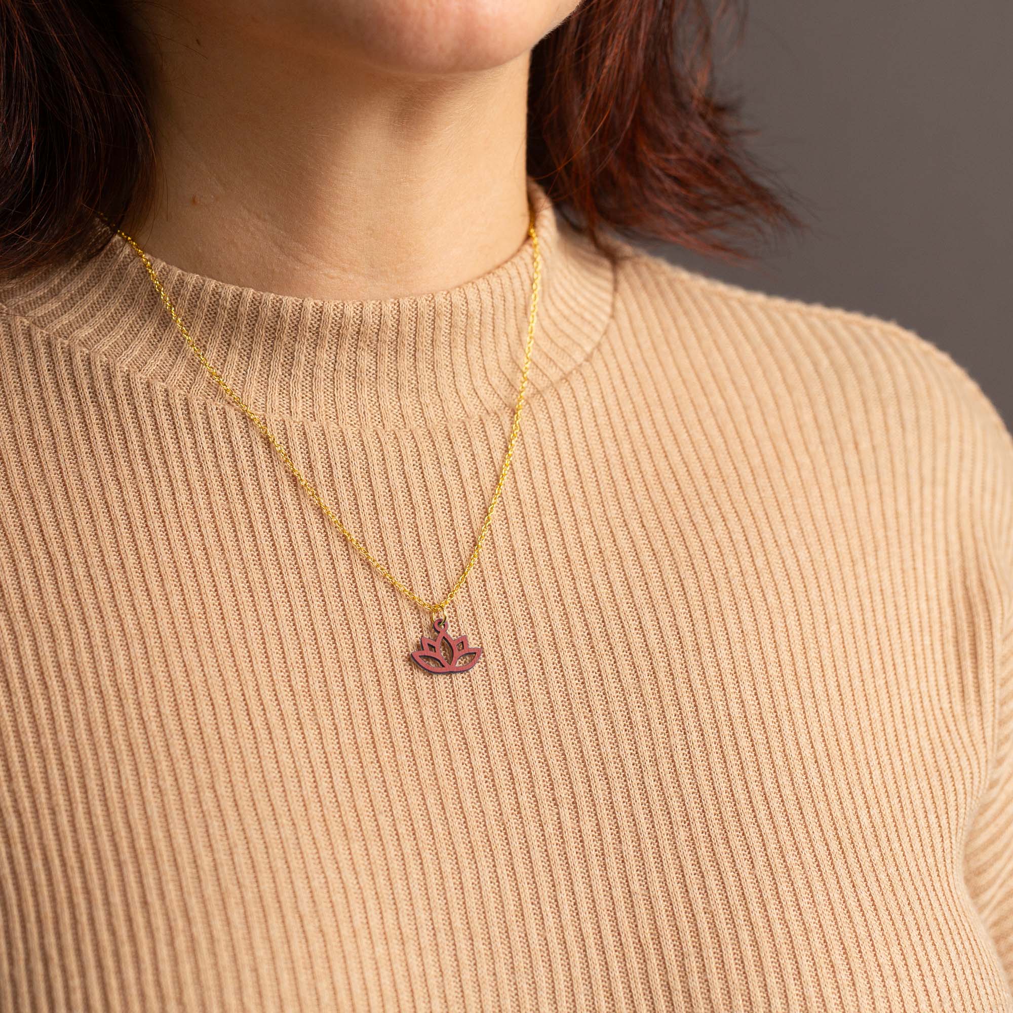 Die „Lotus“ Halskette mit Holzanhänger vereint natürliche Ästhetik mit bewusstem Design: Der nur 1 mm dünne Anhänger ist äußerst leicht und angenehm zu tragen – ideal für jeden Tag und besondere Momente.