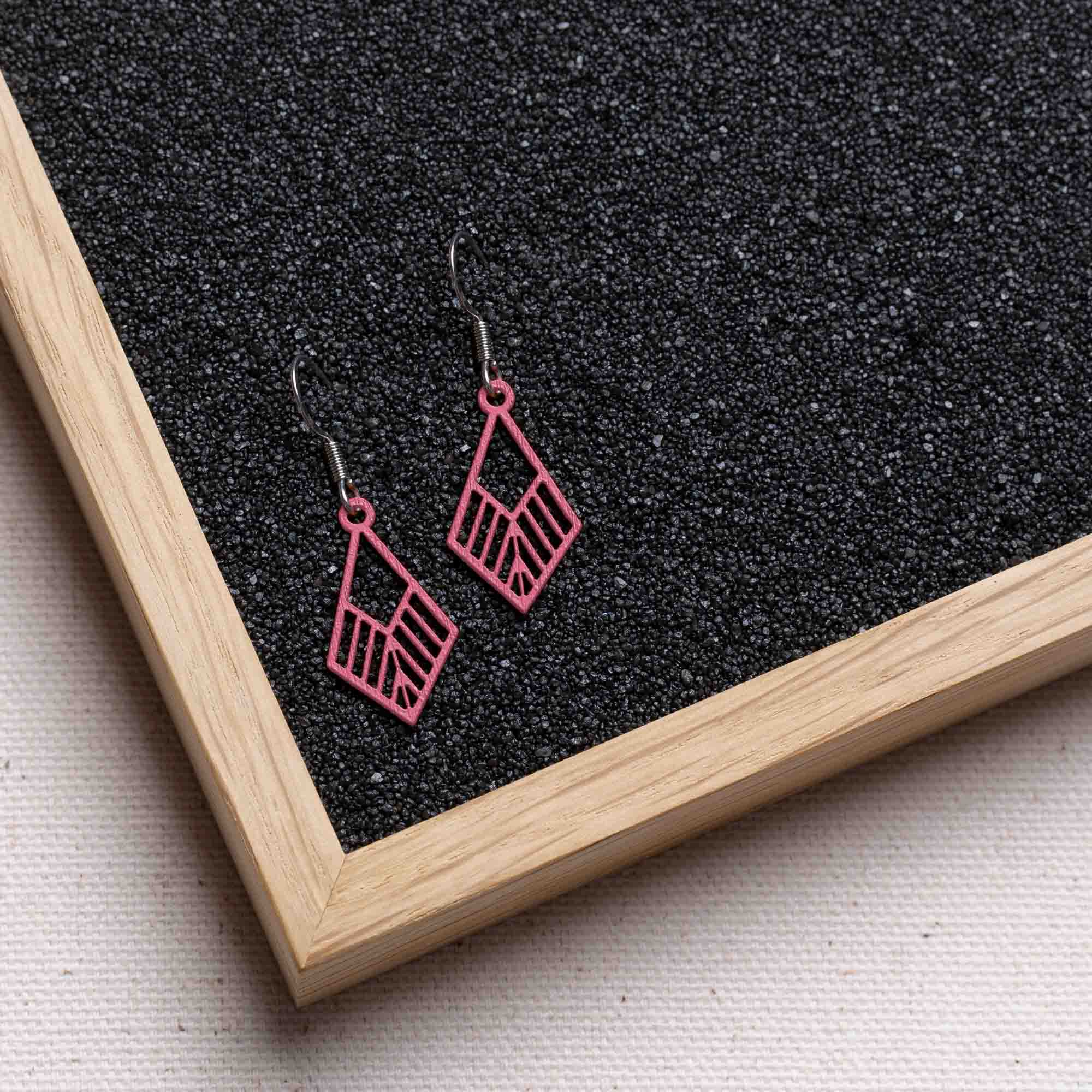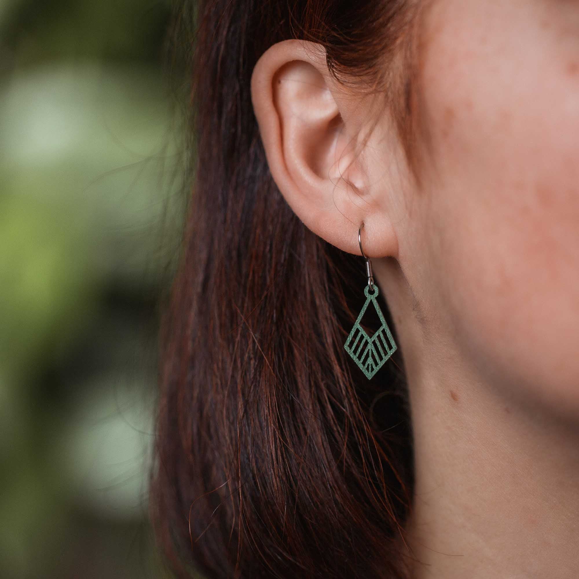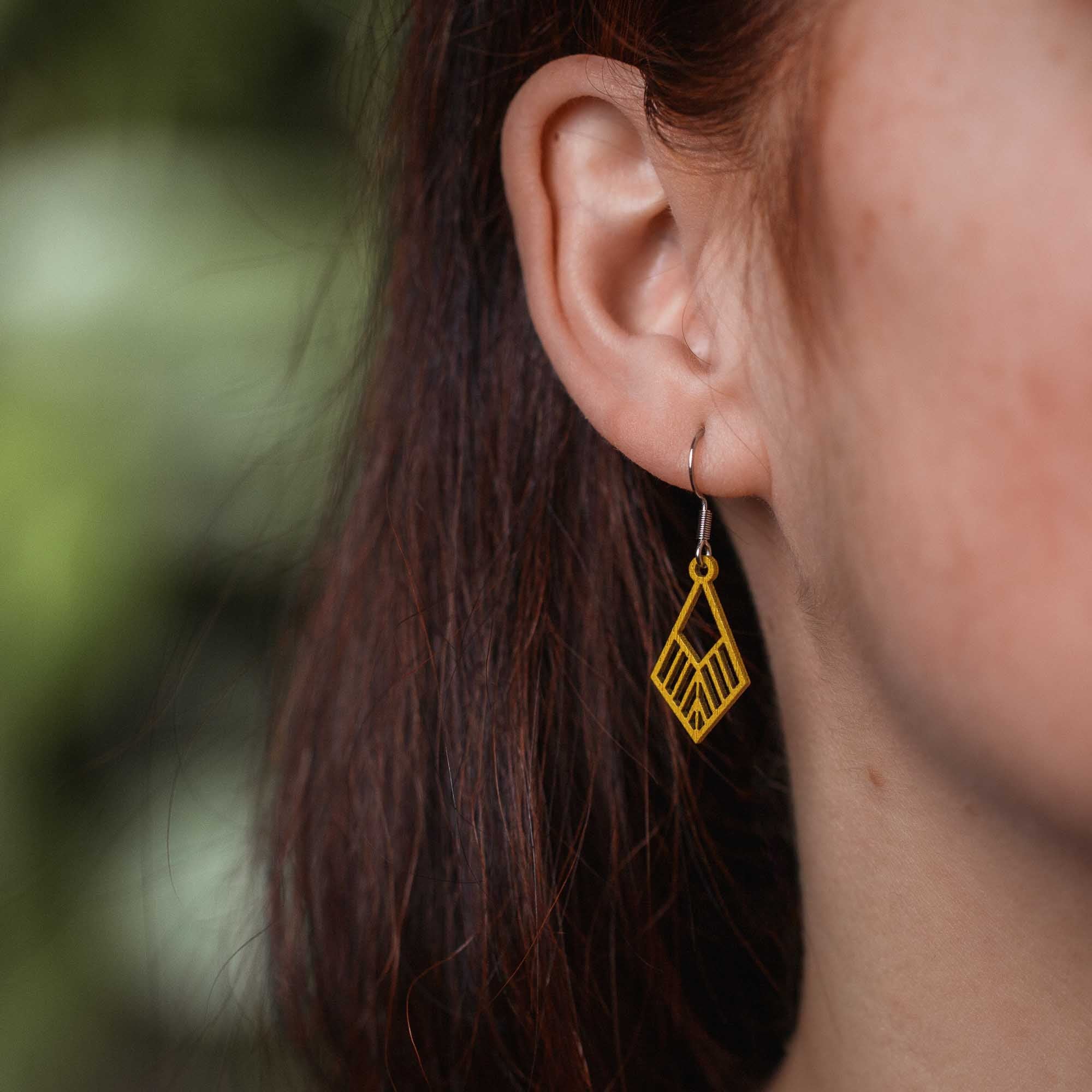Für empfindliche Ohren: antiallergene Edelstahlstecker in Silber, Gold oder Rosé-Gold, kombiniert mit präzise gefrästen Holzanhängern in sechs Farben für deinen individuellen Stil.