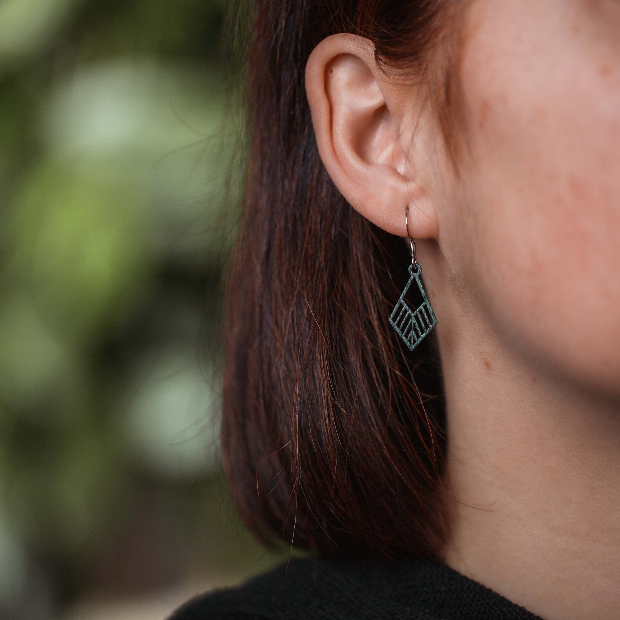 Die Kombination aus stabilem, 1 mm dünnem Holzanhänger und hautfreundlichen Edelstahlsteckern sorgt für ultraleichten Tragekomfort, Formstabilität und dauerhafte Schönheit. Oberflächen-/Tragegefühl: seidig-glatt, leicht, hautfreundlich – auch bei ganztägigem Tragen.