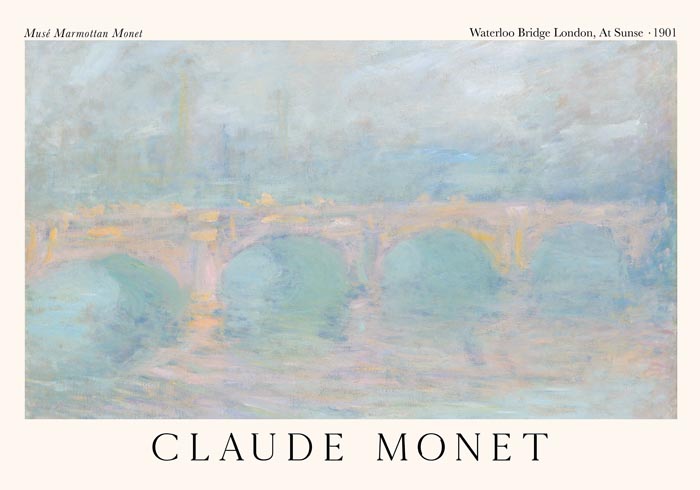 Ein authentischer Fine-Art-Druck aus Berlin – Monets Sonnenuntergang über der Waterloo Bridge in meisterhafter Qualität neu interpretiert.