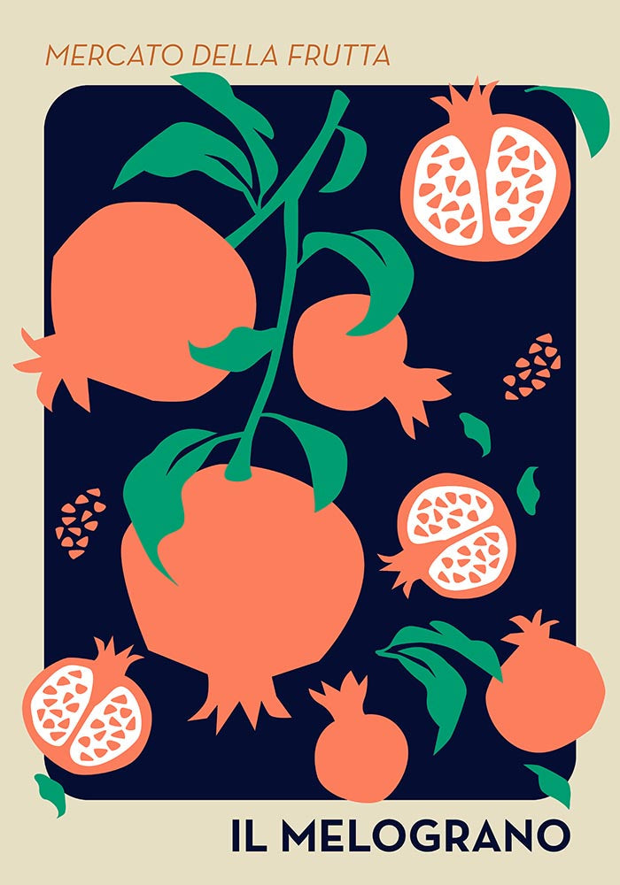 Il Melograno – Fruit Market Dark Blue Art Poster | UV-beständig | Mediterraner Kunstdruck aus Berlin