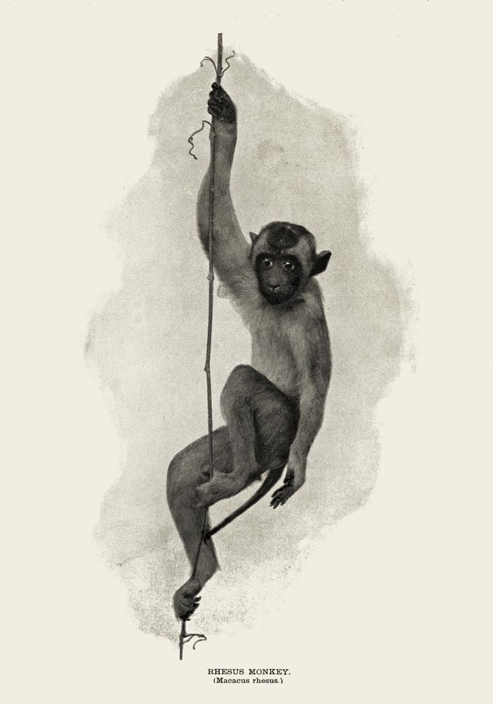 Ein Fine-Art-Poster im Antique-Stil, das mit dem Rhesusaffen-Motiv subtilen Charakter und Detailfreude an die Wand bringt.