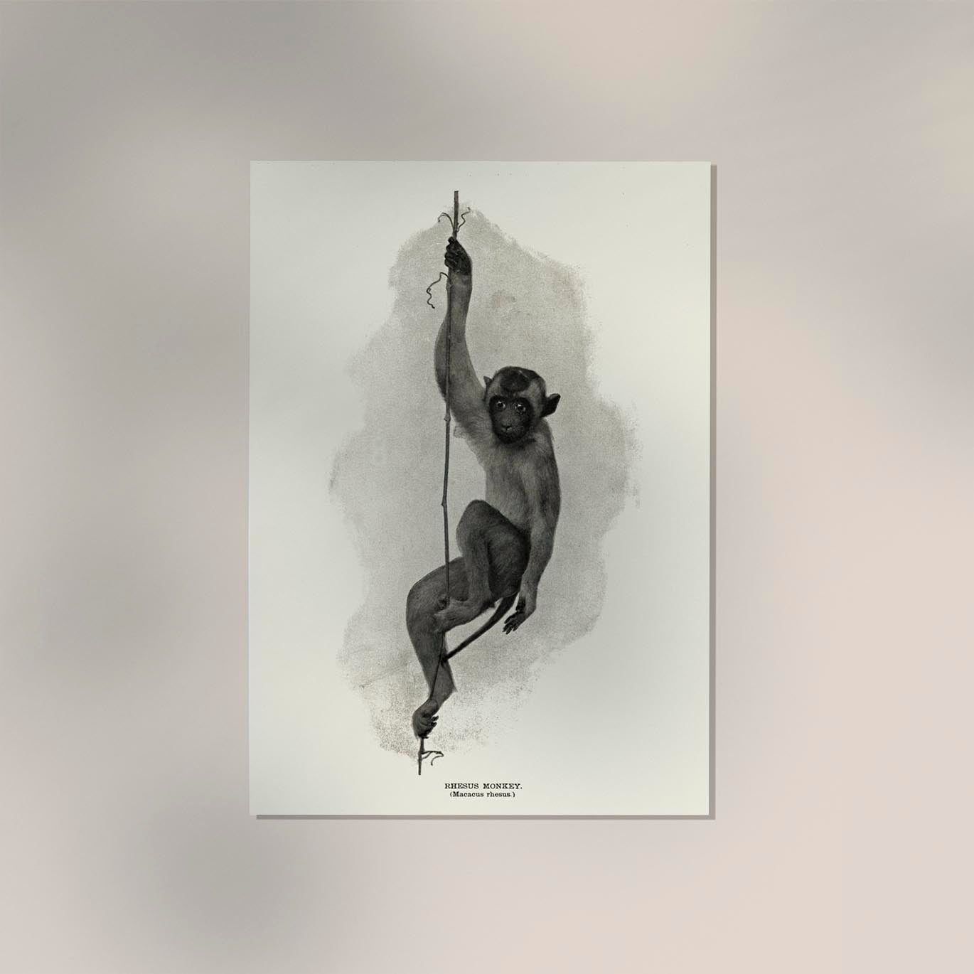 Antique Rhesus Monkey Poster – Vintage Tierillustration mit Fine-Art-Wirkung