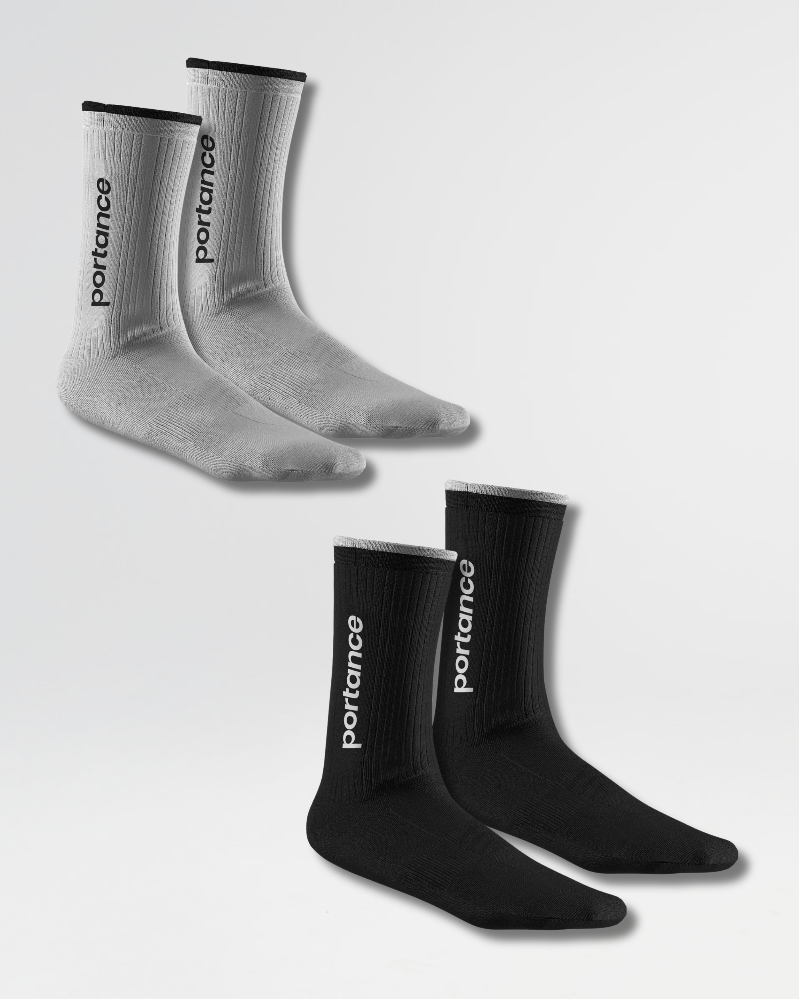 Je nach Auswahl besteht das Bundle aus 3 oder 5 Paar techSocks – in Schwarz, Weiß oder gemischten Farben.