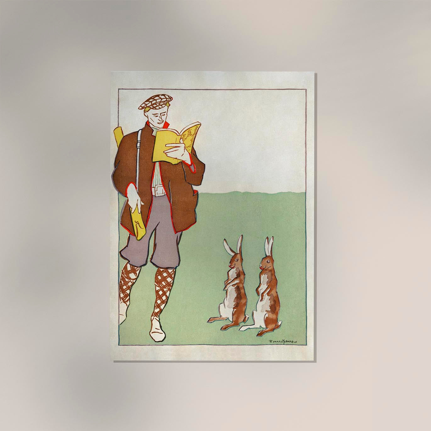 Man reading a book with Hares by Edward Penfield