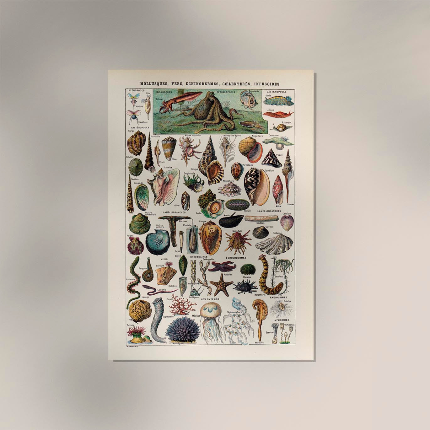 Mollusques, Vers, Echinodermes Chart Poster