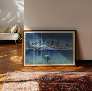 Ob in modernen, minimalistischen oder klassisch eingerichteten Räumen – die Hasui-Drucke fügen sich elegant ein und setzen zugleich visuelle Akzente mit kultureller Tiefe.