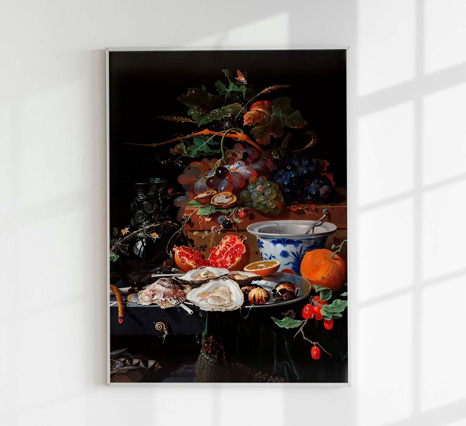 Fruits and Oysters by Abraham Mignon Botanical Poster verbindet die Tiefe barocker Stilllebenmalerei mit professioneller Fine-Art- und Canvas-Qualität und schafft ein charakterstarkes Kunststatement für Dining- und Wohnräume.