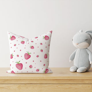 Erdbeeren Premium Kinder Dekokissen – Sommerzauber im Zimmer | 40×40 cm | Baumwolle
