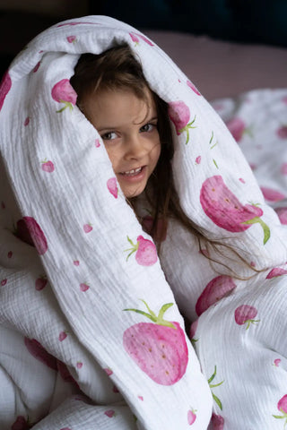 Erdbeeren Premium – Sommerzauber | OEKO‑Tex Baumwolle | 135x200 cm