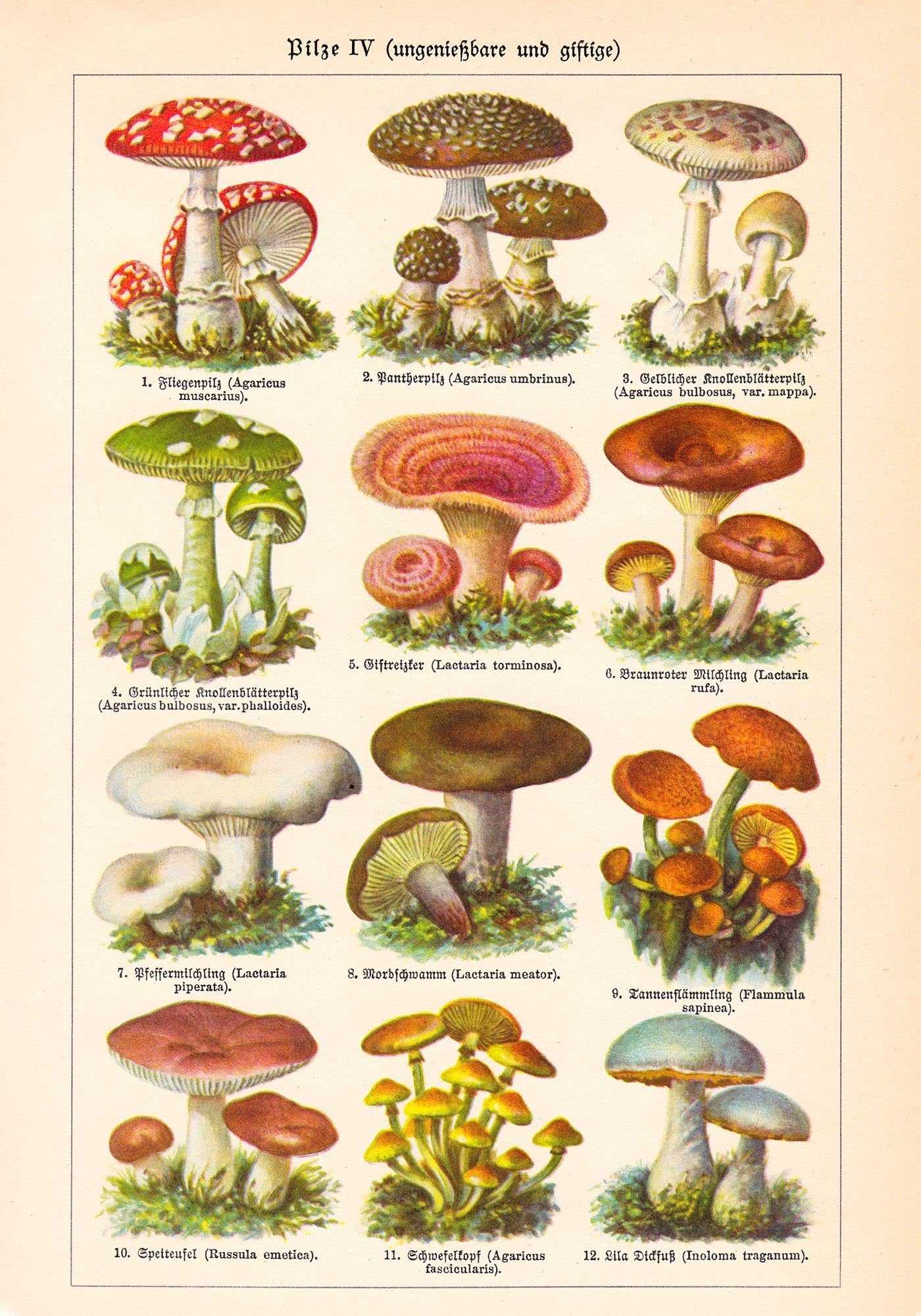 Das Vintage Mushrooms Chart IV – Pilze IV bringt den klassischen Stil historischer Naturillustrationen in dein Zuhause – detailreich, warm und zeitlos schön.