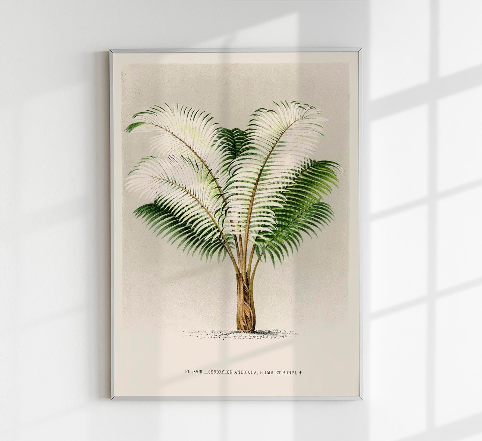 Das Ceroxylon Andicola Poster übersetzt die ikonische Silhouette der andinen Wachspalme in eine ruhige, präzise Komposition – elegant, grafisch und von natürlicher Strahlkraft.