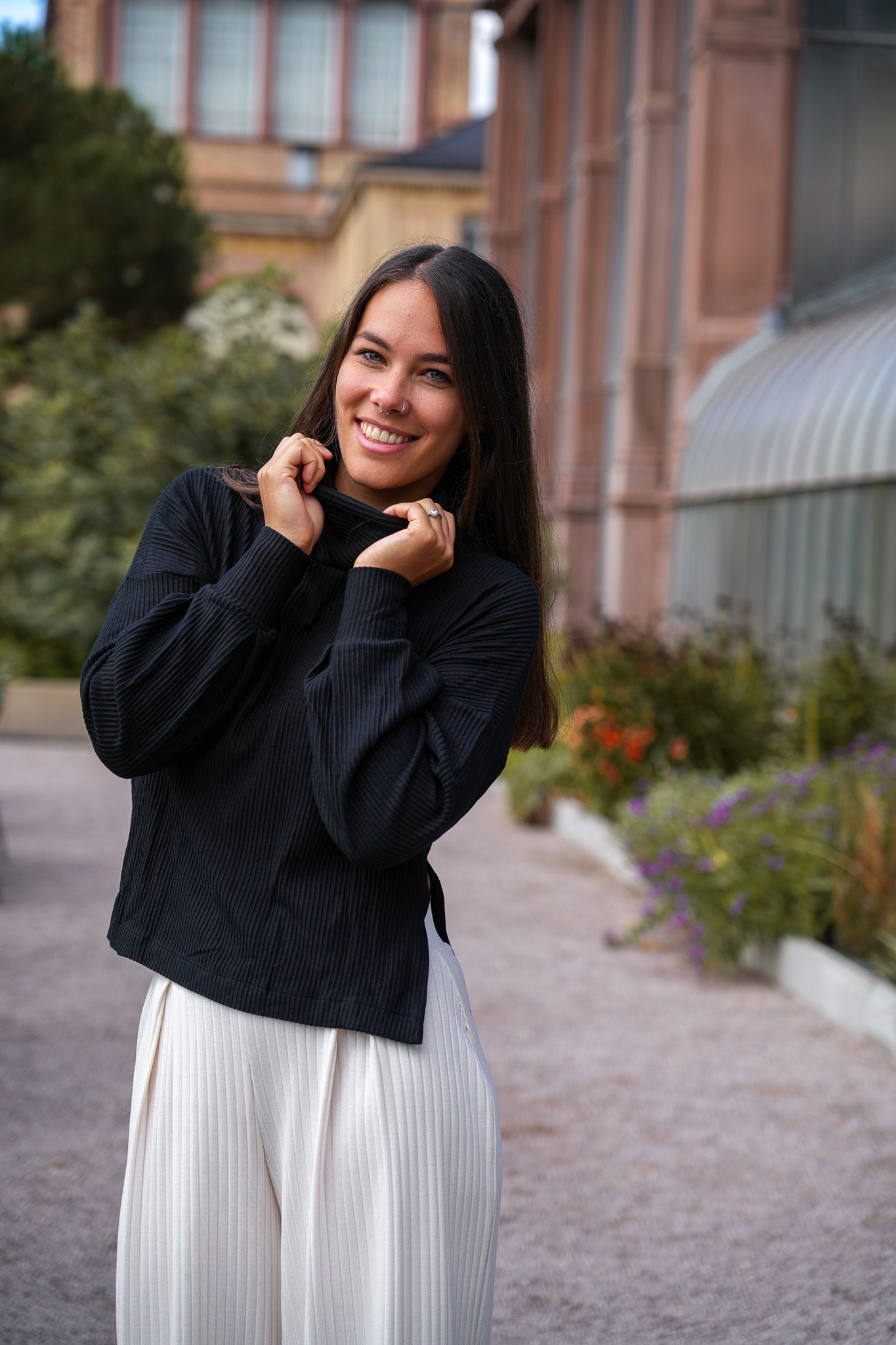 Der Aila Basic Pulli Black von Vivien Joy zeigt, wie modern schlichte Eleganz wirken kann. Der weite Oversize-Schnitt kombiniert mit seitlichen Schlitzen sorgt für eine fließende, feminine Silhouette. Weite Ärmel und ein hoher Rollkragen verleihen dem Design eine lässige Note, während der gerippte Stoff die Figur umspielt und gleichzeitig Struktur schenkt. Ein Pullover, der sich mühelos in jedes Outfit integriert und mit Tragekomfort begeistert.