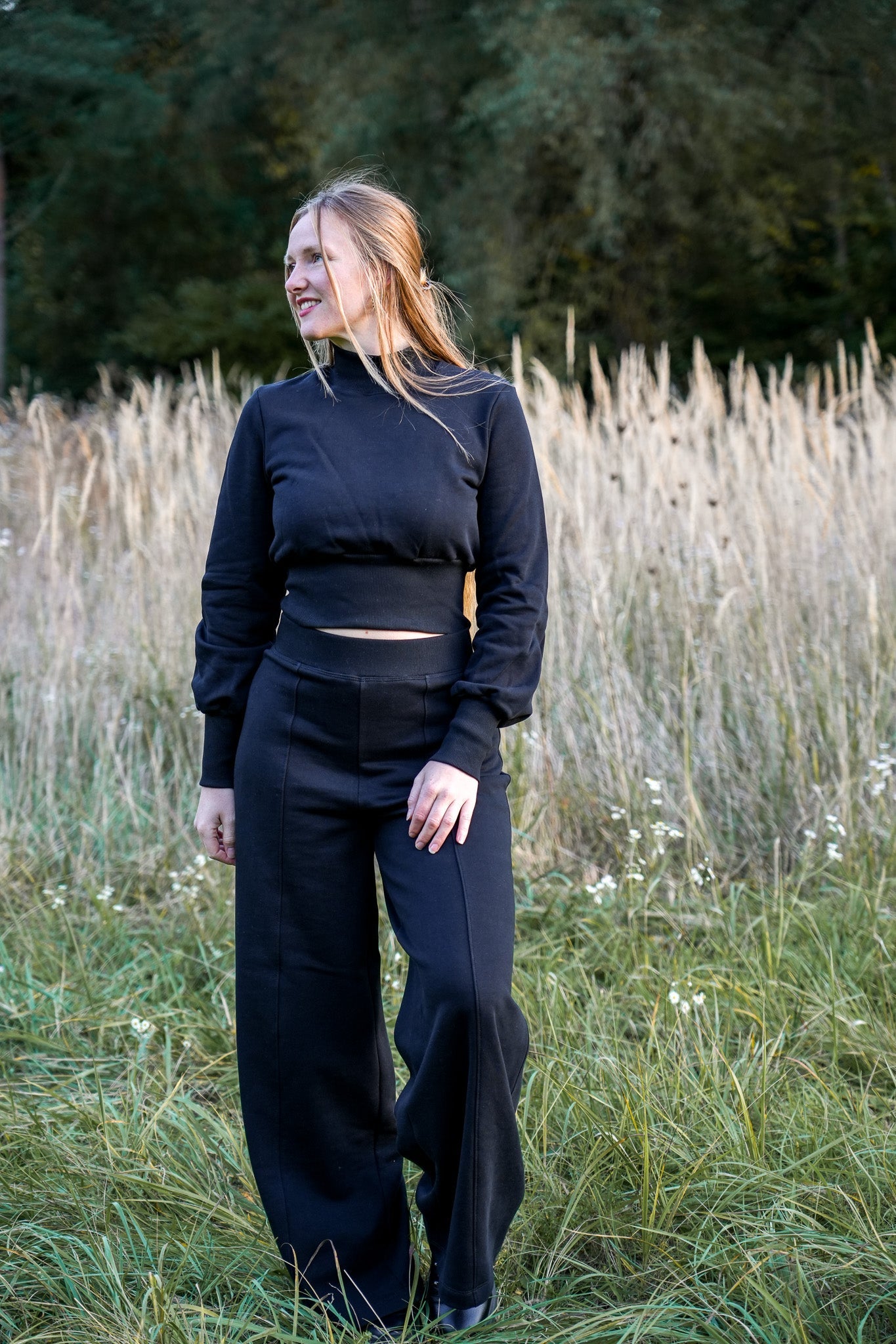 Kayla Crop Pulli Black – Bio-Baumwolle | Modern & Bequem | Fair gefertigt