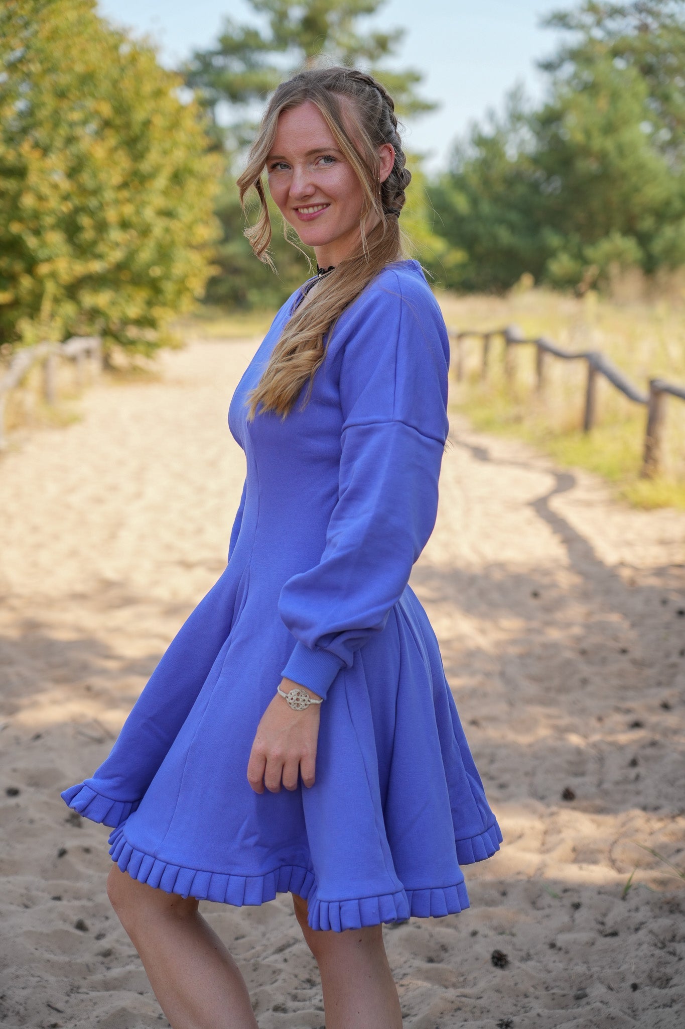 Die dicke Bio-Baumwolle und der leicht ausgestellte Rock sorgen für angenehmes Hautgefühl und fließende Bewegung. Oberflächen-/Bediengefühl: weich und komfortabel – ideal für kühle Tage und stilvolle Outfits.