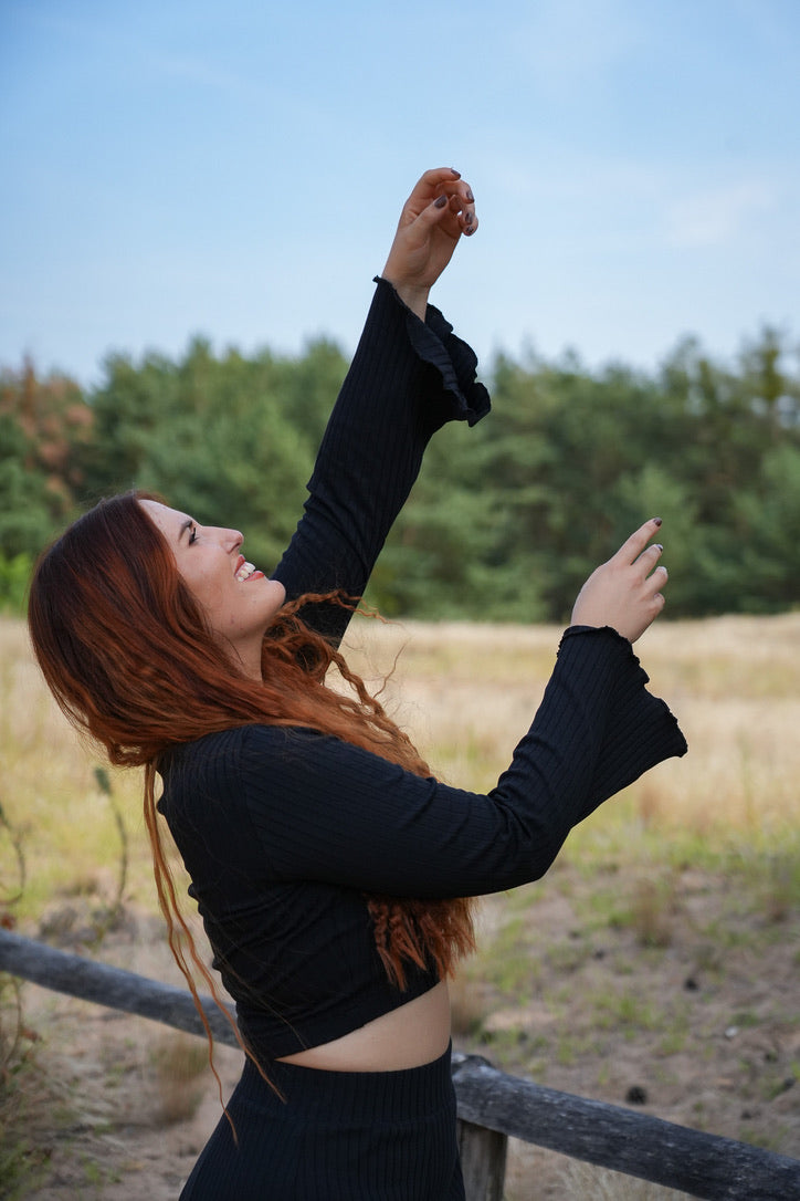 Der Lya Crop Pulli Black B-Ware steht für modernen Stil, bewusste Materialien und hochwertige Handarbeit – ein Lieblingsteil mit nachhaltiger Haltung.