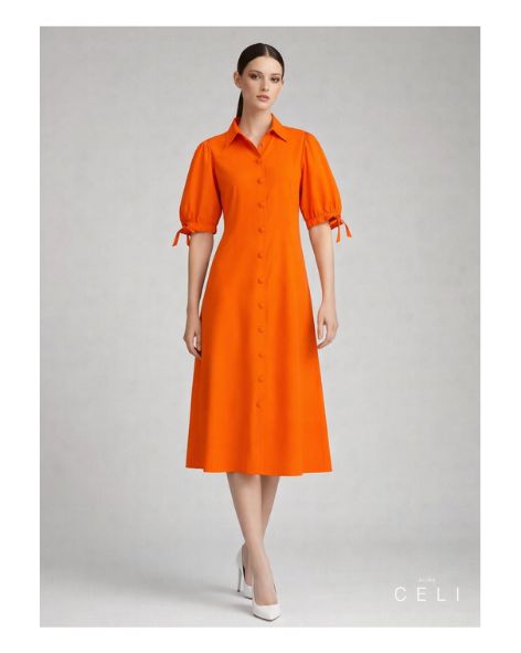 Reines, ungefüttertes Leinen sorgt für maximale Atmungsaktivität und sommerliches Tragegefühl. Die verstärkten Nähte und die hochwertige Knopfleiste unterstreichen die präzise Verarbeitung. Der kräftige Orangeton macht das Kleid zu einem expressiven Keypiece.