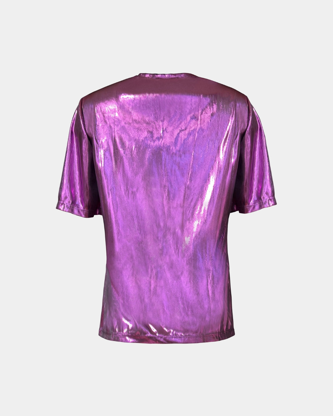 Eine metallische Bluse aus recycelten Materialien – leicht, zeitlos und verantwortungsvoll in Europa gefertigt.