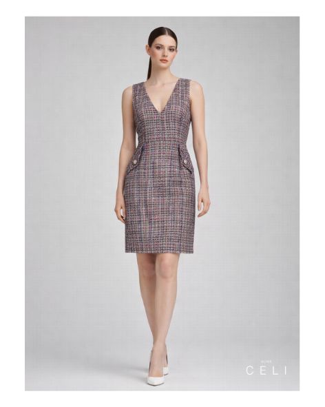 Das ALINE CELI Tweed Bouclé Couture Kleid verbindet Bouclé-Textur, präzisen Schnitt und komfortables Satinfutter zu einem modernen Klassiker.
